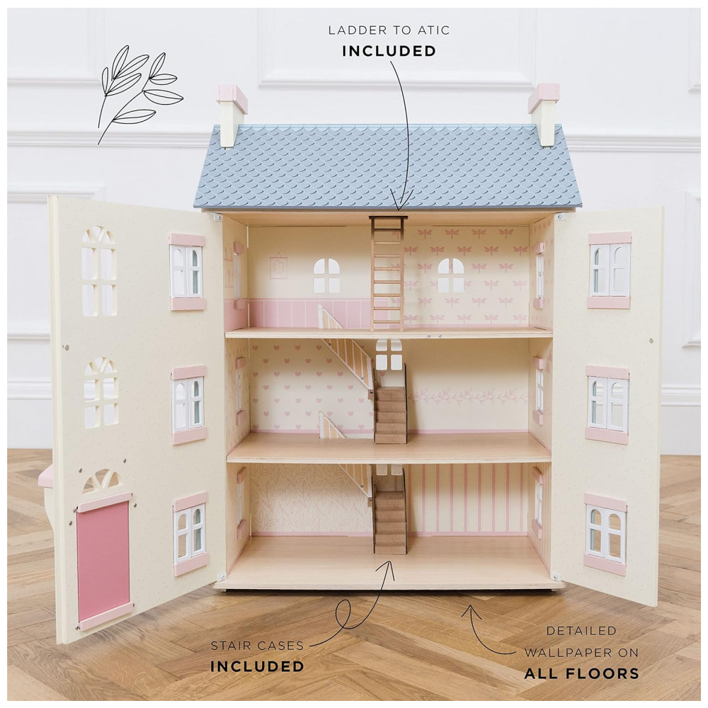 Casa de Bonecas de Madeira com 4 Andares 2 Quartos para Crianças a partir de 3 anos Le Toy Van Branco