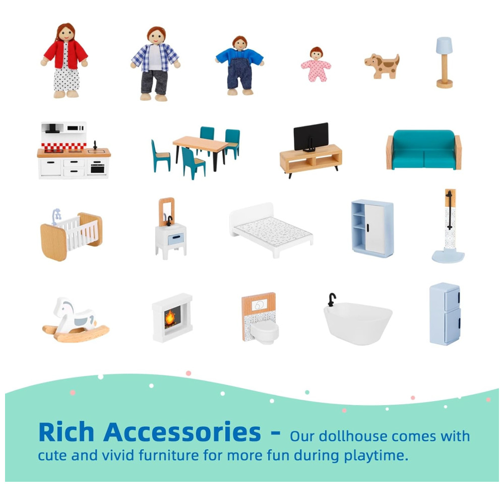 O assento do vaso sanitário também pode ser aberto e fechado. Através do processo de brincar, as crianças podem exercitar suas habilidades motoras finas, estimular a criatividade e cultivar um simples senso de família. A casa de bonecas é feita principalmente de madeira, a construção robusta em madeira irá resistir ao uso dos seus filhos uma e outra vez. Conjunto de casa de bonecas com bordas lisas e arredondadas, sem BPA e em conformidade com os padrões de segurança de brinquedos dos EUA para garantir a segurança das brincadeiras das crianças. Este é um presente perfeito para meninas e meninos com mais de 3 anos em aniversários, dia das crianças, Natal e outros festivais.