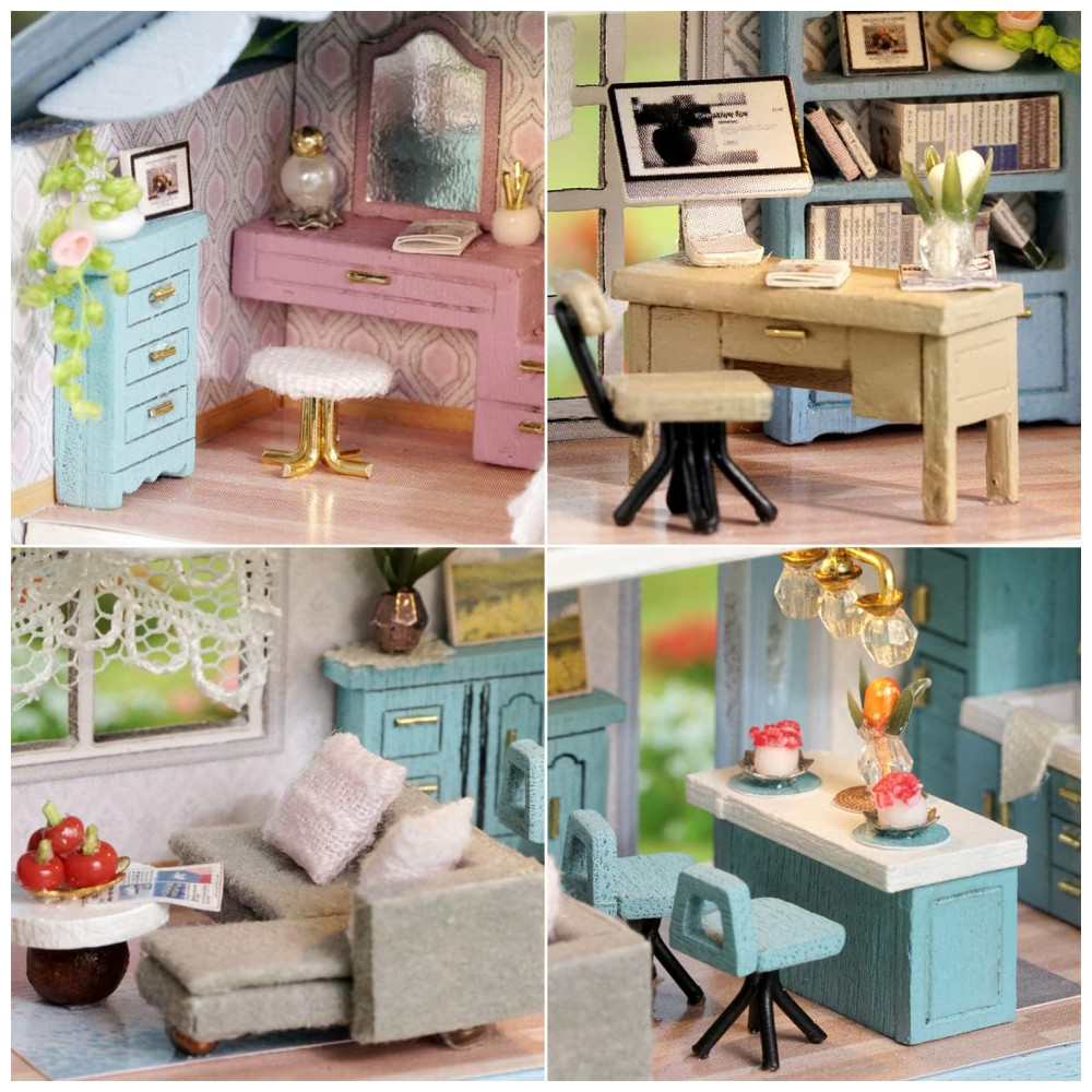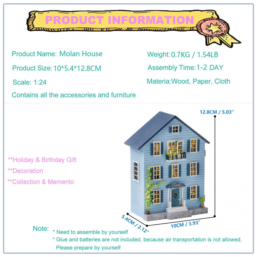 INCLUÍDO O kit de casa de bonecas em miniatura DIY como exibição de imagem e instrução em inglês, enviamos LED extra .O LED torna a casa da boneca mais romântica. Finalmente, temos uma caixa de embalagem colorida que faz com que pareça um presente perfeito.