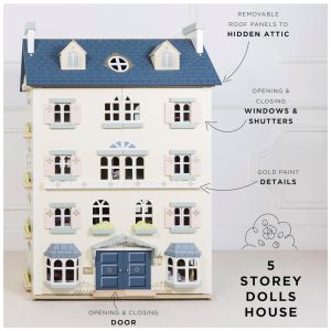 Casa de Bonecas Palace House Grande em Madeira Um Presente Encantador Conjunto de Brincar com 5 Andares – Le Toy Van