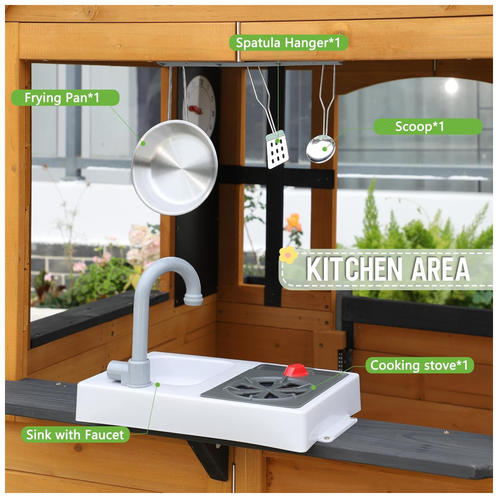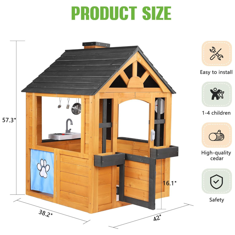 Casa de Brincar para Crianças ao Ar Livre – Feita de Cedro com Cozinha Porta para Pets Pia Fogão e Janelas – Ideal para Diversão no QuintalJocoevol