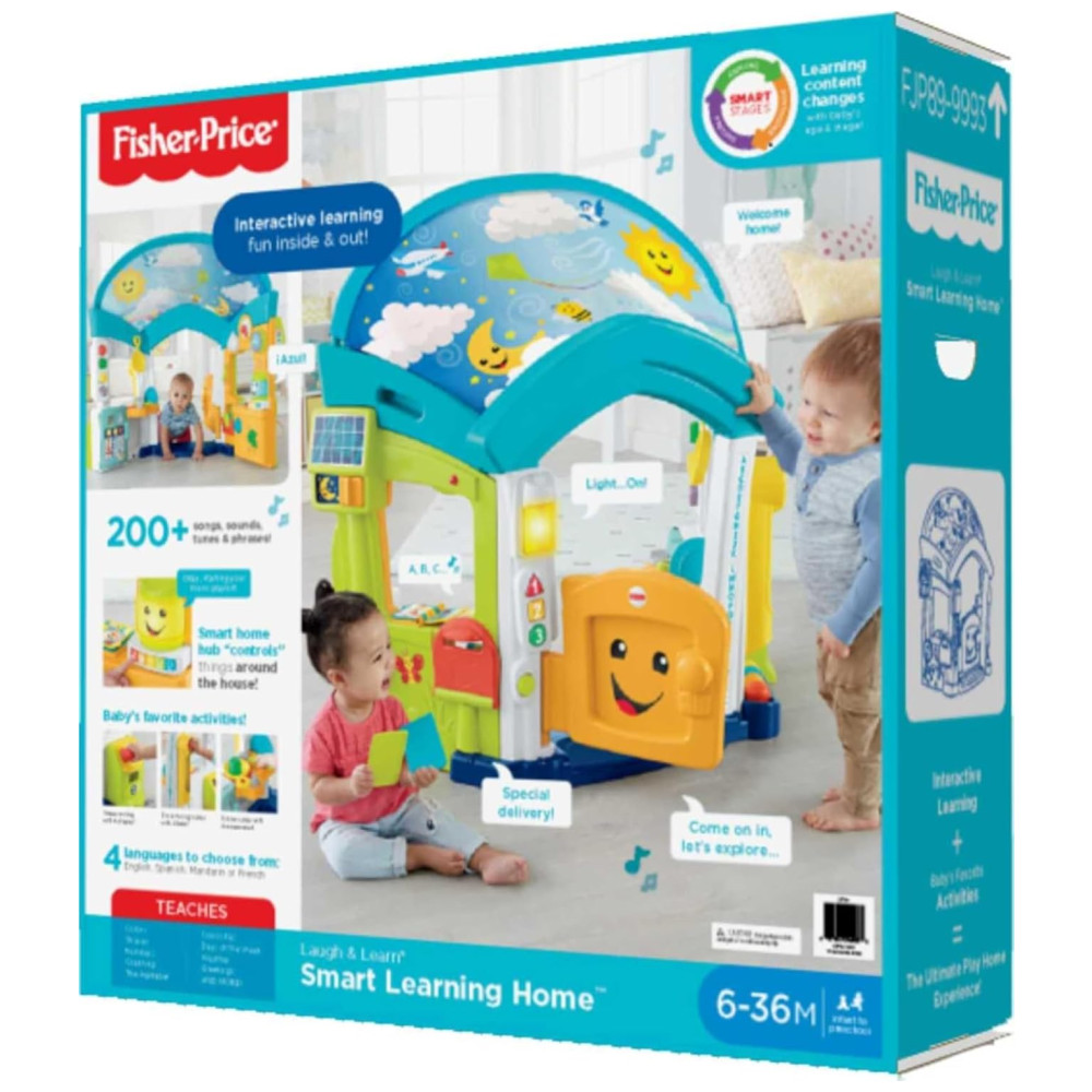 Apresentando o Fisher-Price Laugh & Learn Smart Learning Home Playhouse, uma casinha interativa repleta de luzes, músicas, sons e atividades para aprendizado imersivo e divertido em 360 graus! Ideal para bebês e crianças pequenas a partir de 6 meses.