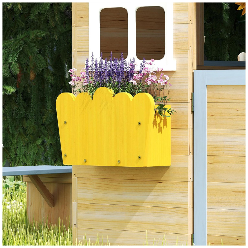 Proporcione às crianças um local para brincarem ao ar livre com esta incrível casa de brincar de madeira da Outsunny! Equipada com porta, janelas, banco, estação de serviço e suportes para vasos de flores. Com telhado inclinado, 2 janelas para circulação de ar e porta de tamanho reduzido para fácil acesso. Seu filho poderá brincar de faz de conta neste espaço que estimula a criatividade, desenvolve habilidades sociais e coordenação motora. Feita de madeira de pinho estável, oferecendo uma estrutura resistente para uso diário. Inclui um banco com capacidade de até 50kg. Dimensões: 95cm L x 112cm P x 135cm A (com o telhado). Porta: 39cm L x 50cm A. Indicado para crianças de 3 a 7 anos. Atende aos padrões de segurança ASTM F963 e CPSIA.