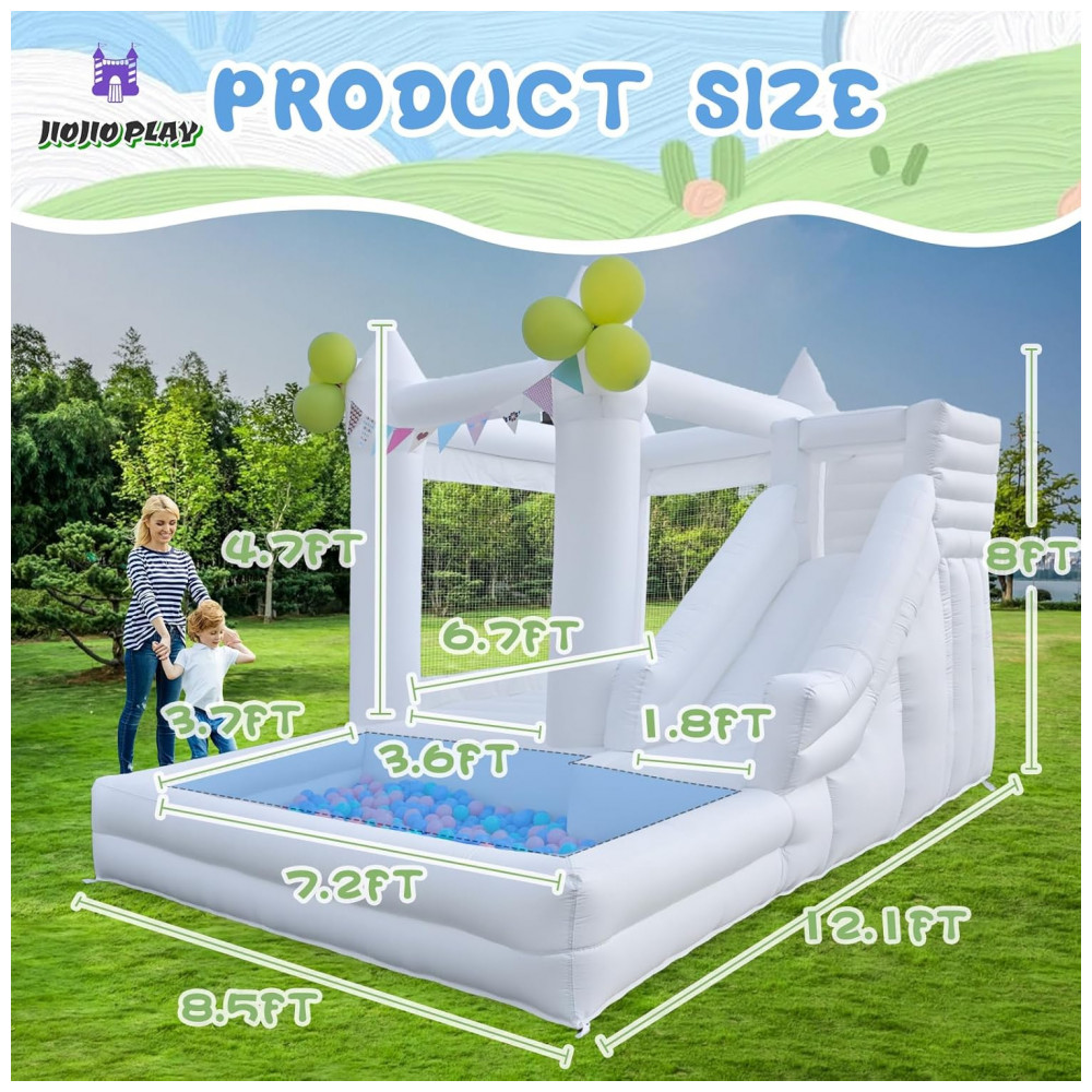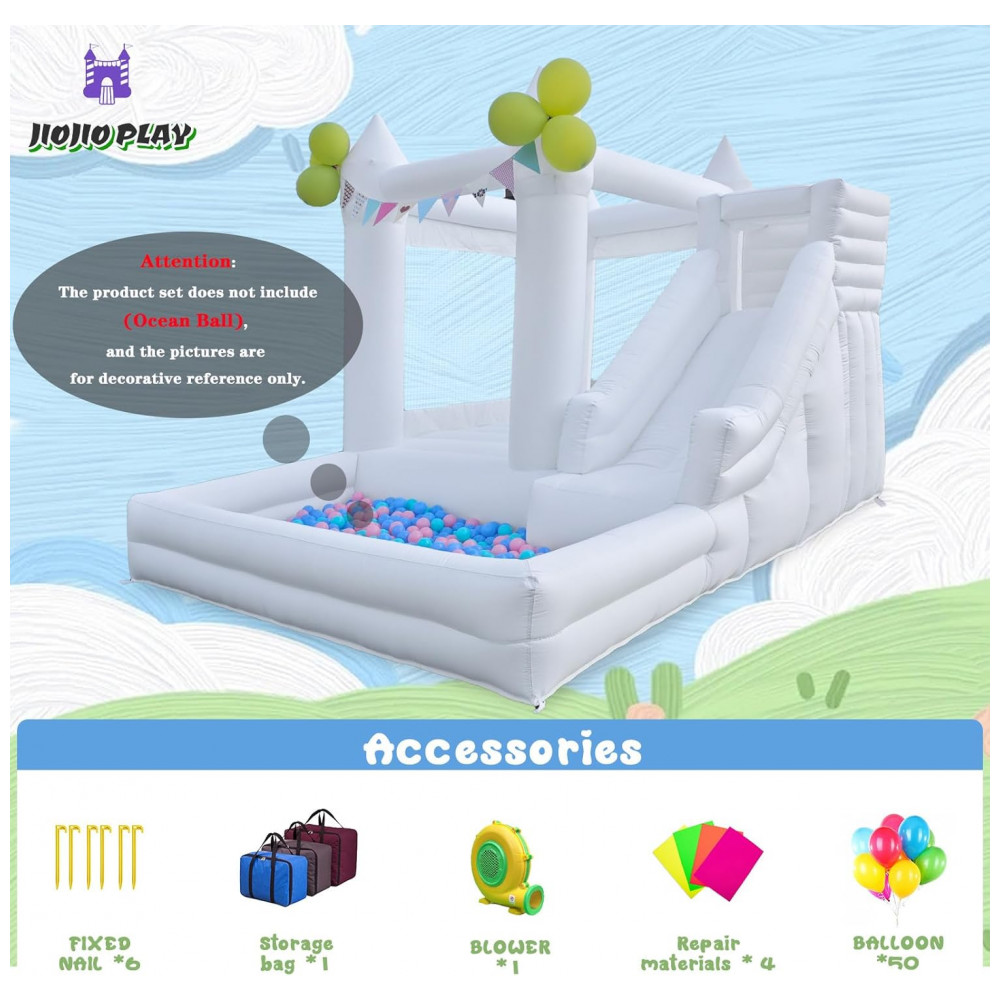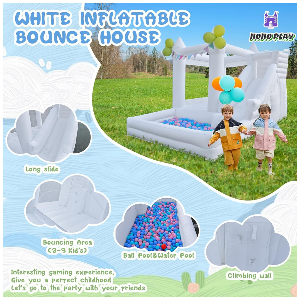 Casa de Pula-Pula Inflável Branca Oxford com Piscina de Bolinhas e Escorregador – Ideal para Festas e EventosJIO JIO PLAY
