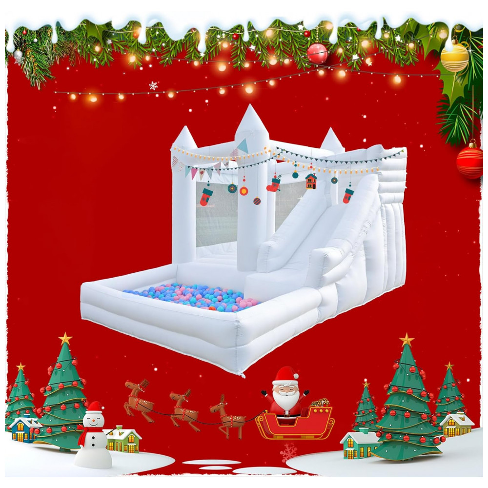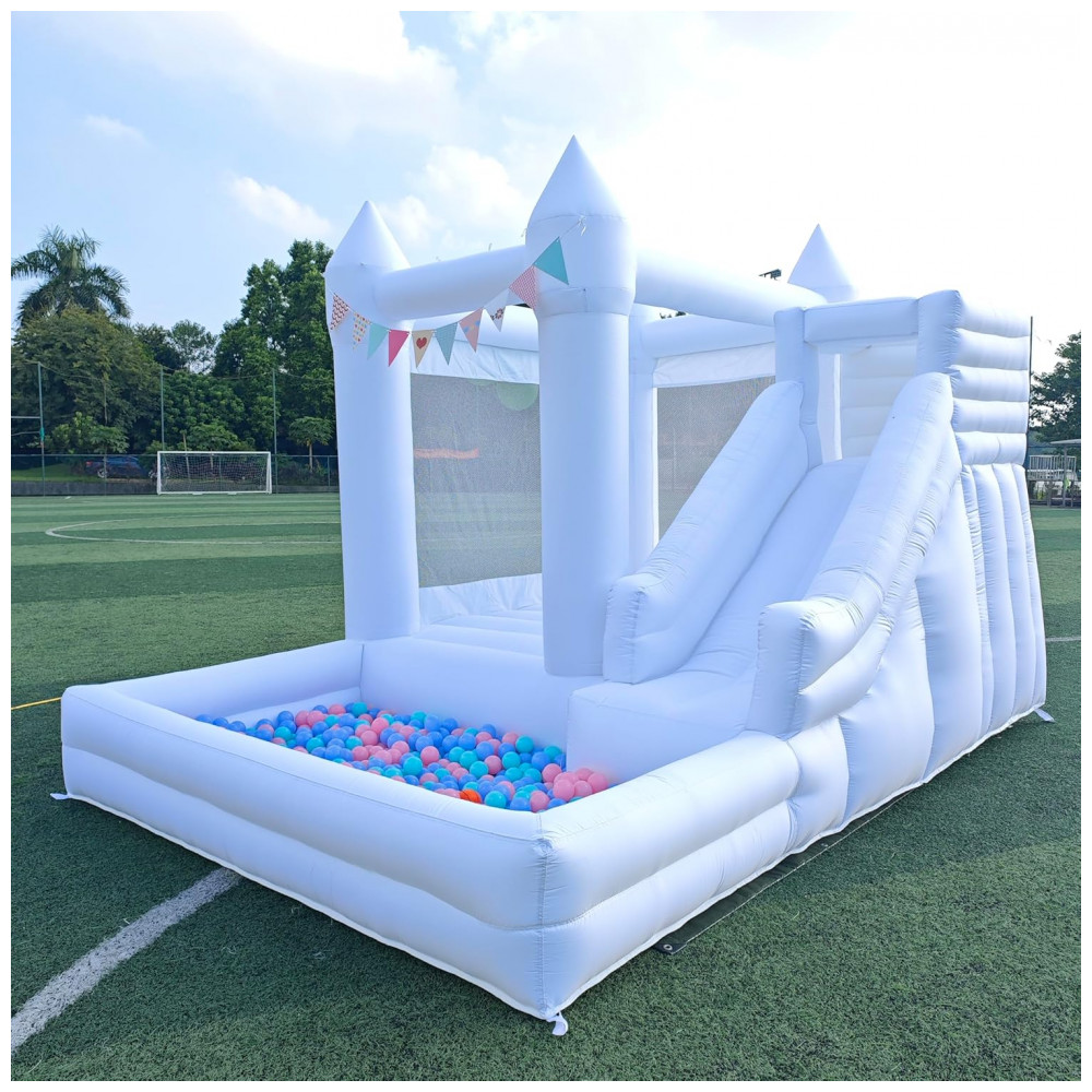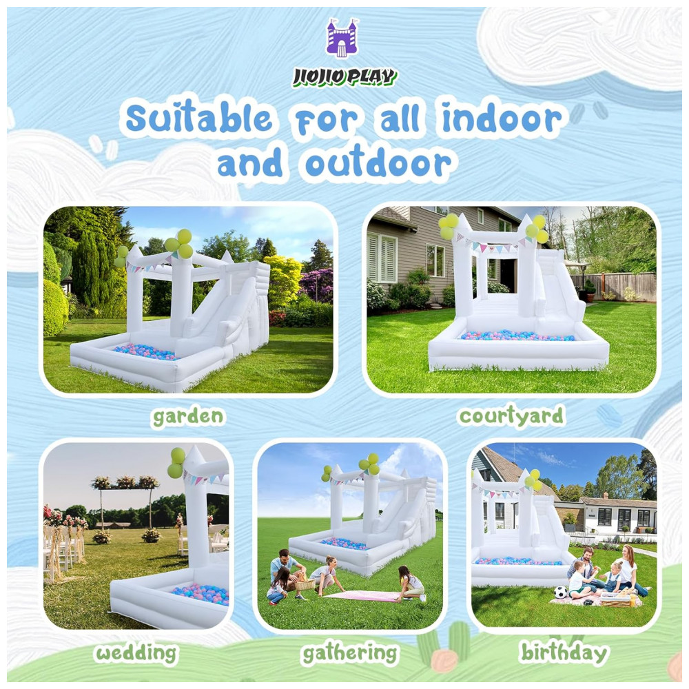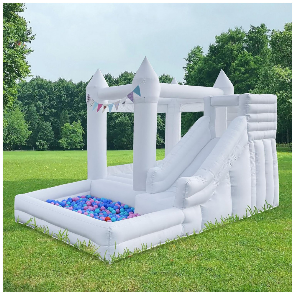 Casa de Pula-Pula Inflável Branca Oxford com Piscina de Bolinhas e Escorregador – Ideal para Festas e EventosJIO JIO PLAY