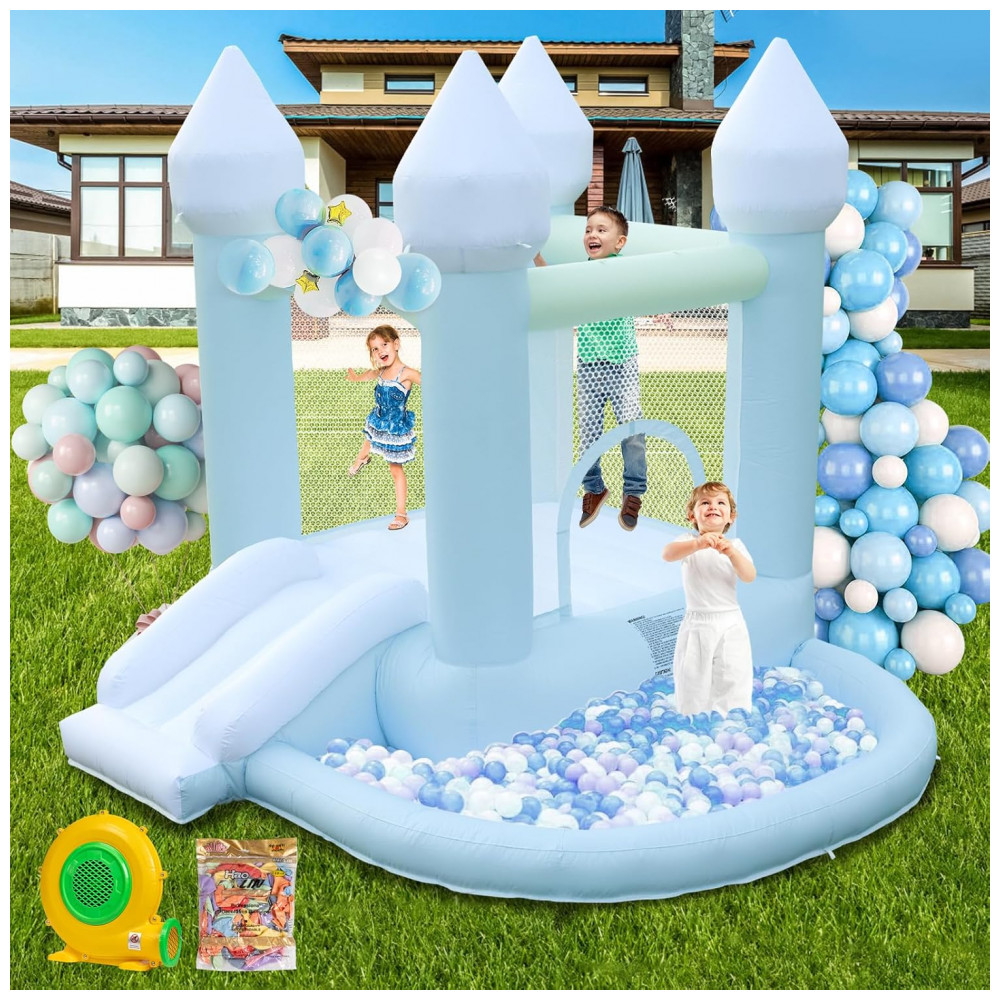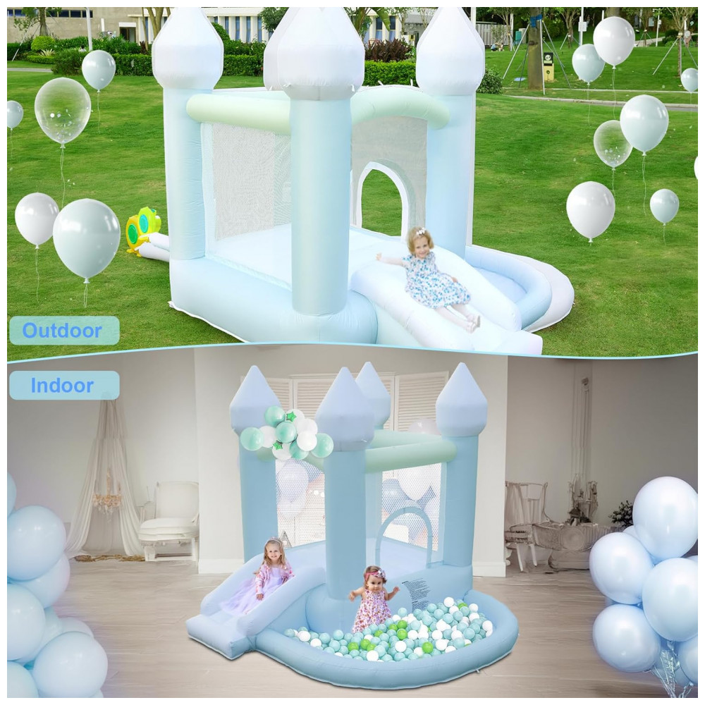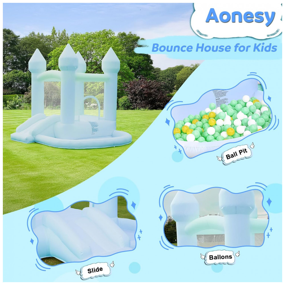 Casa de Pula-Pula para Crianças Inflável com Piscina de Bolinhas e Escorregador Casa de Diversão Portátil para Uso Interno e Externo AONESY