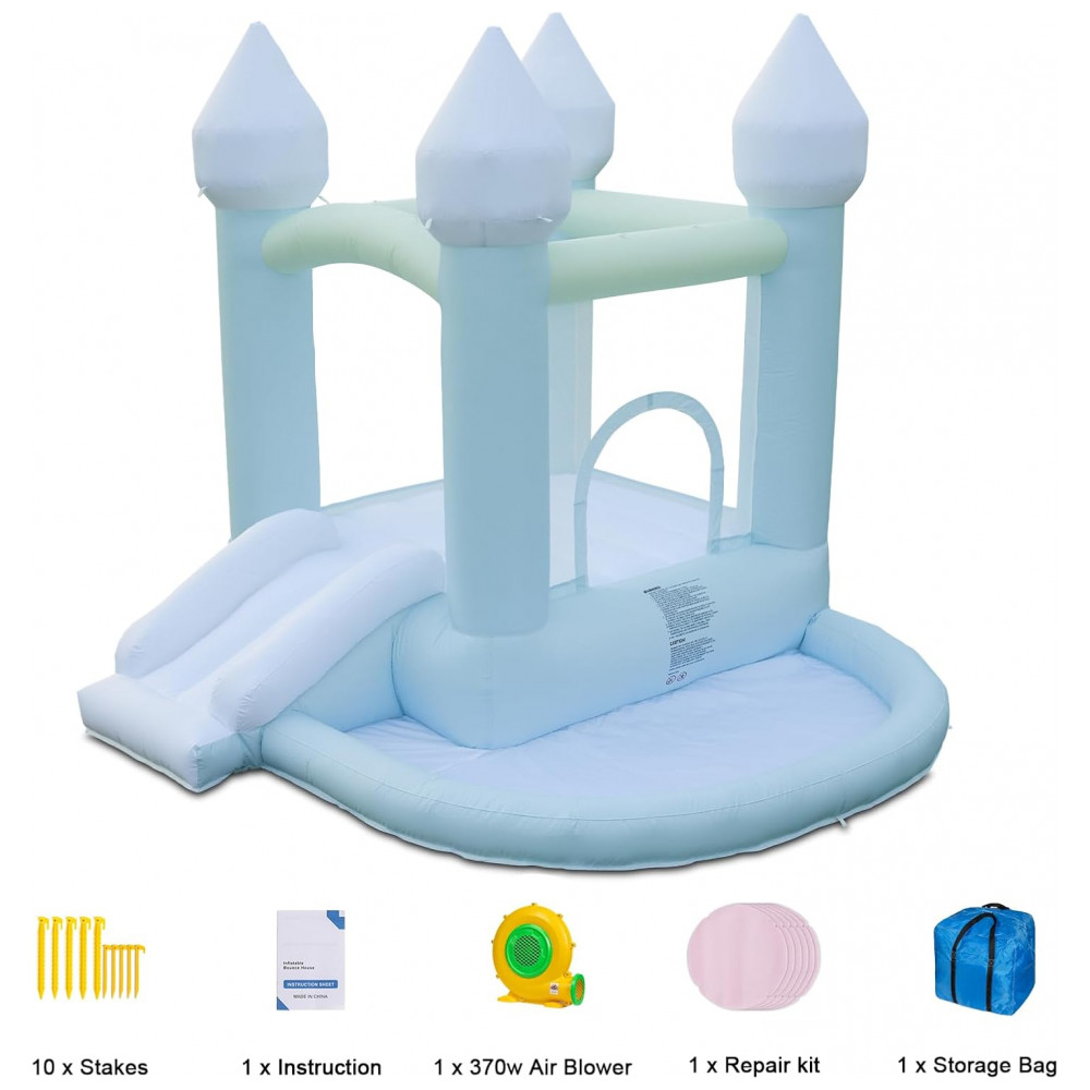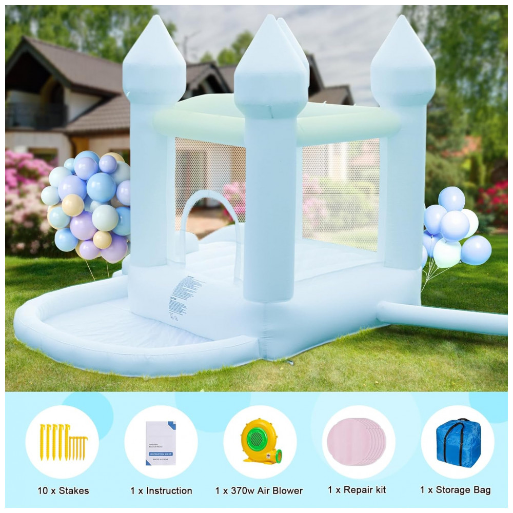 Certificada como segura e durável, esta casa de pula-pula inflável possui um potente motor de 370W que oferece suporte consistente para a energia das crianças. Cercas protetoras são instaladas ao redor da área de pulo para evitar quedas. Você pode confiar em seus filhos neste sólido castelo enquanto desfruta de momentos especiais. Fácil de montar, a casa inflável pode ser configurada ou desinflada em 2 minutos. Com tamanho de 2,8×2,7×2,4 metros, é adequada para áreas internas e externas, permitindo que as crianças se divirtam o ano inteiro. A área de pulo espaçosa e a piscina de bolinhas proporcionam diferentes tipos de diversão. Além disso, o design elegante torna esta casa inflável uma opção encantadora para festas, reuniões familiares e ocasiões comerciais.