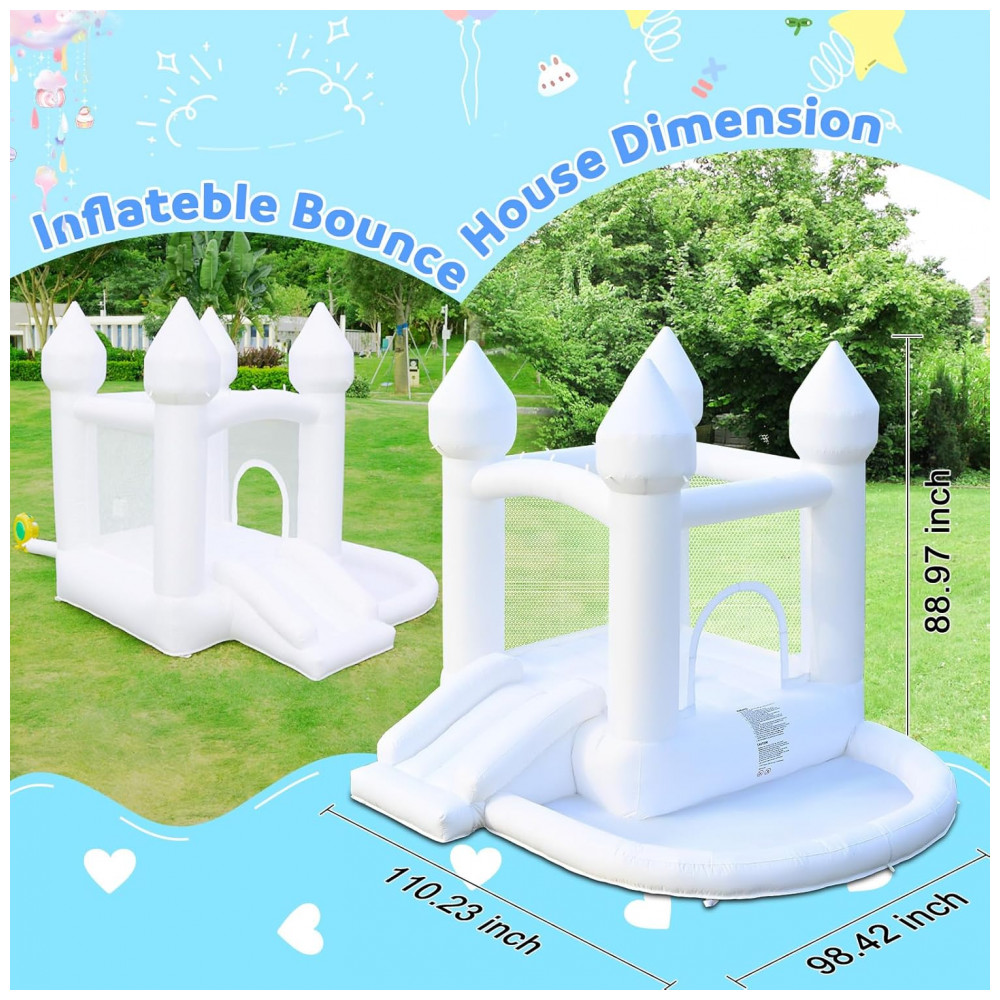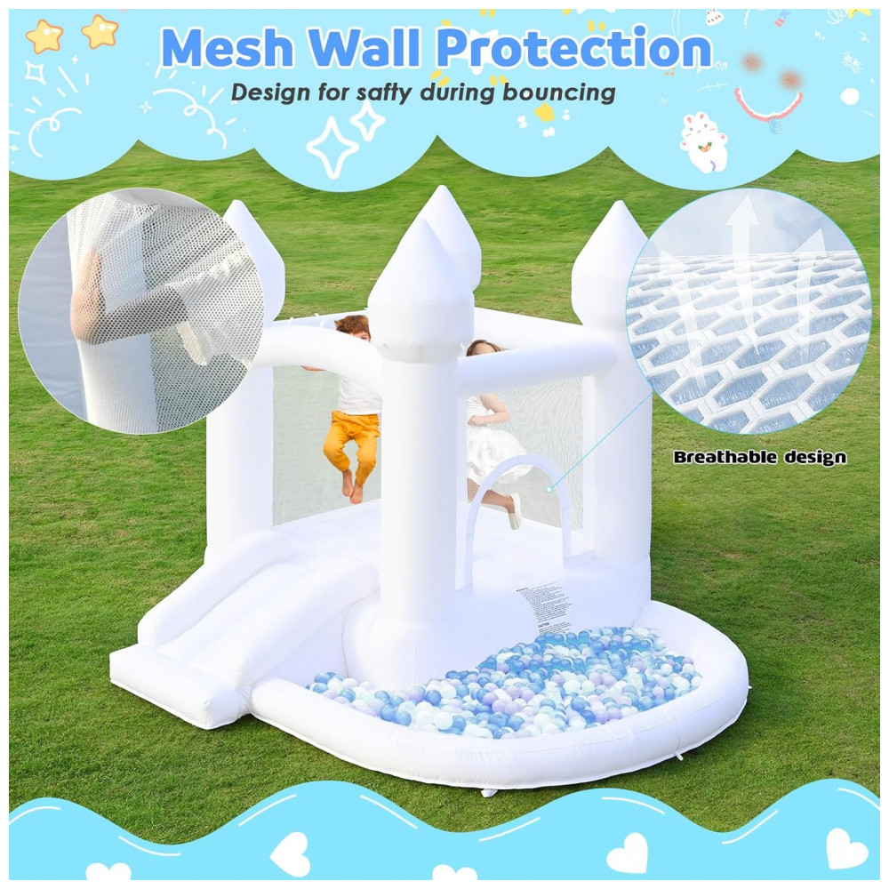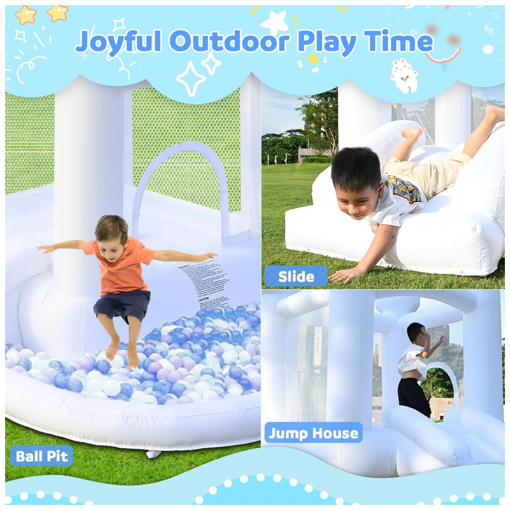 Casa de Pulos FOOING Branca Casa de Pulos Inflável com Soprador de Ar Castelo Pula-Pula com Piscina de Bolinhas para Festas Casamentos Fácil de Mo