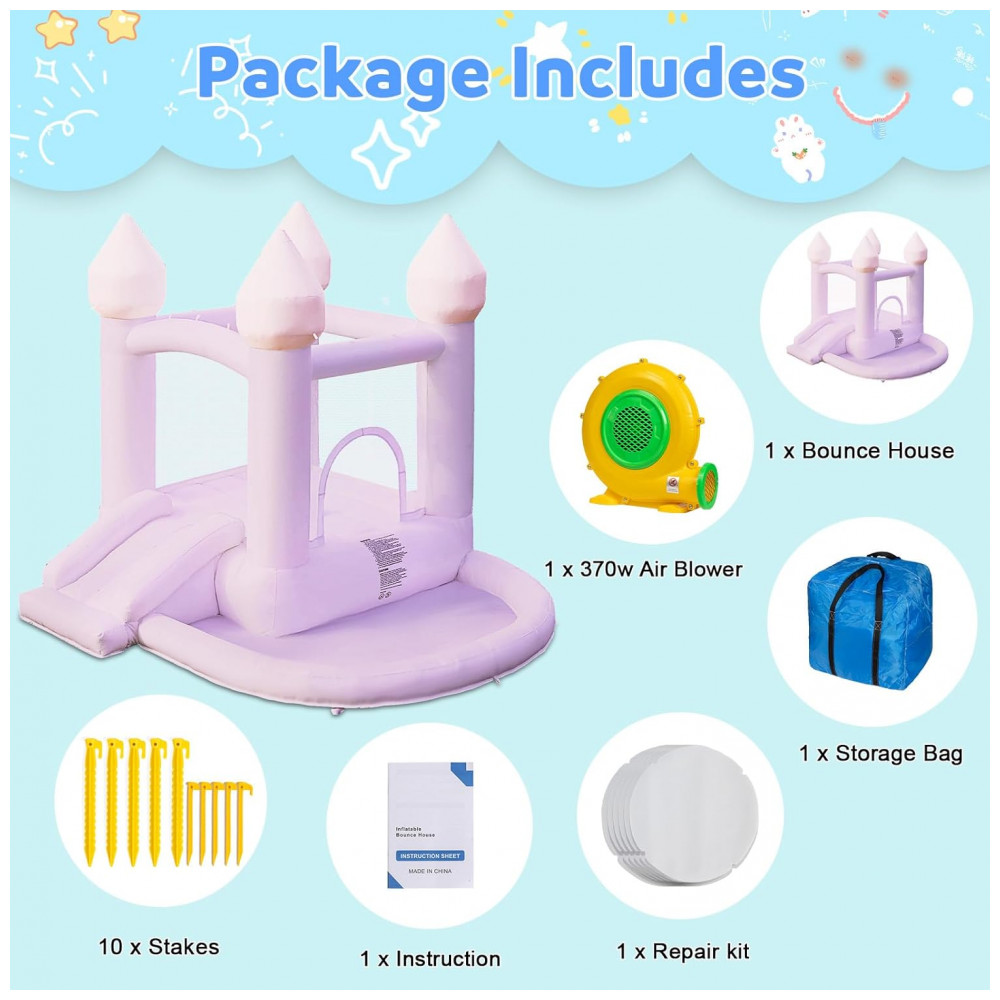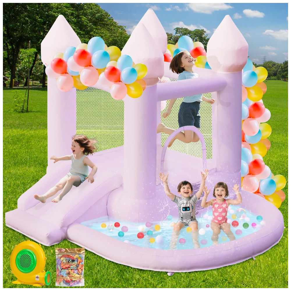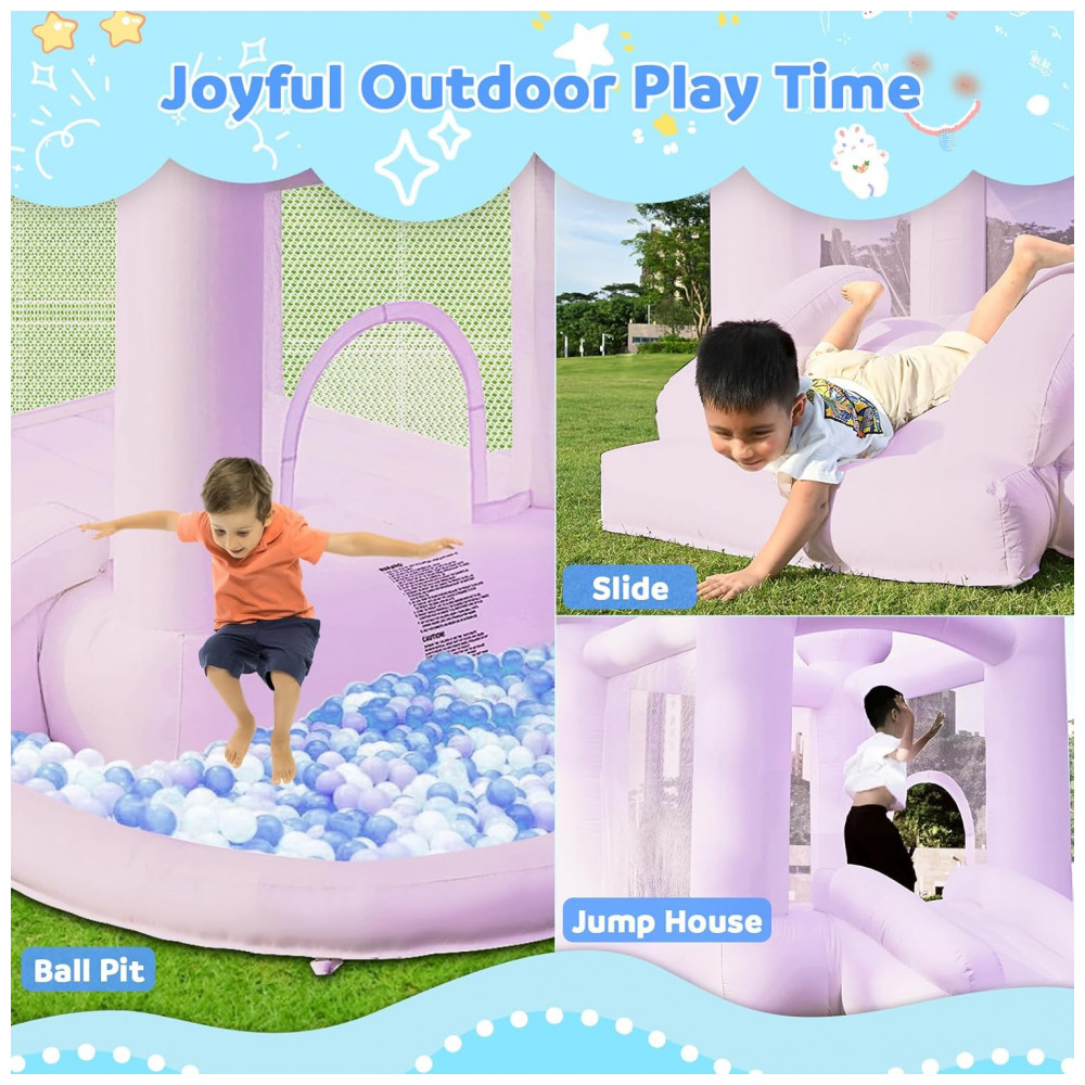 Casa de Pulos Roxa FOOING Casa de Pulos Inflável com Motor de Ar Castelo de Pulos com Piscina de Bolinhas para Festas Casamentos Fácil de Montar