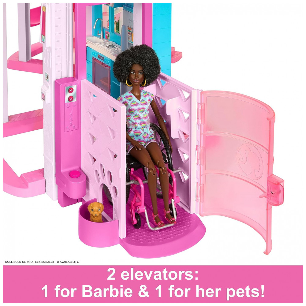 Casa dos Sonhos da Barbie 2023 com 75 Peças 3 Andares Elevador Rosa