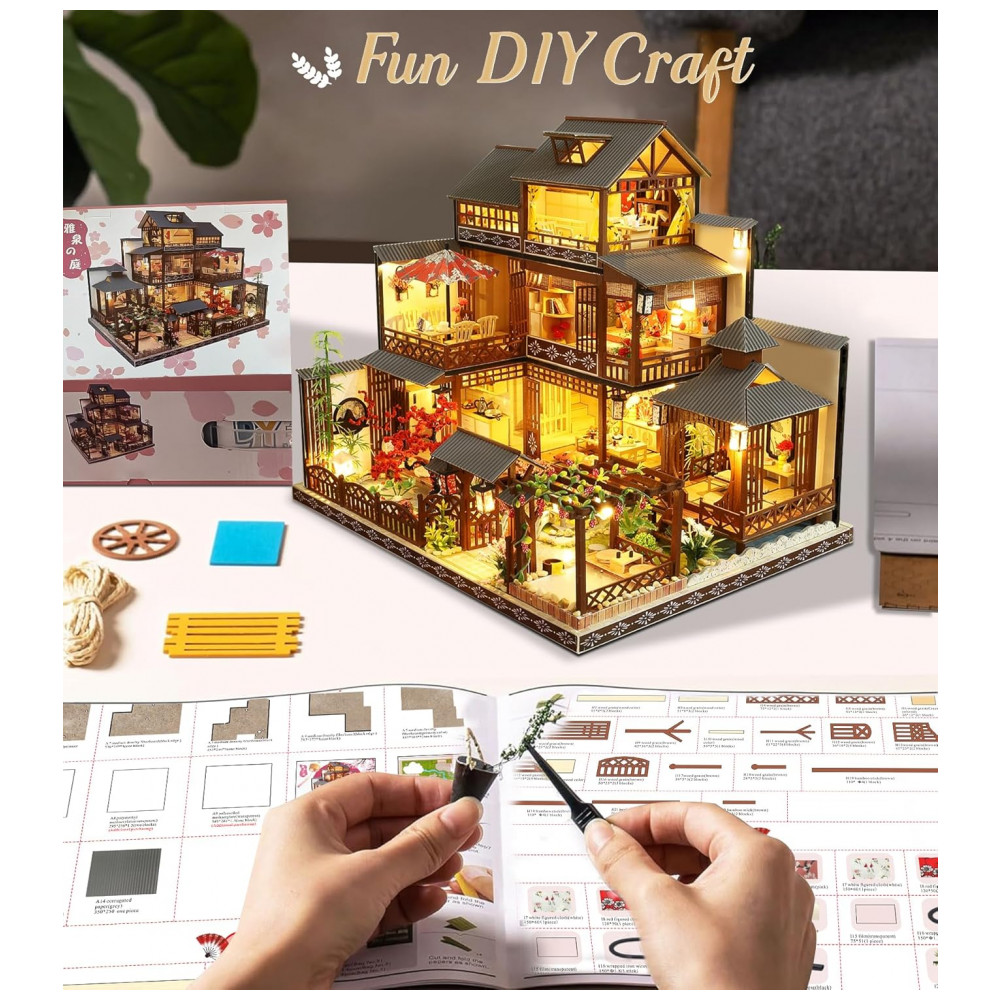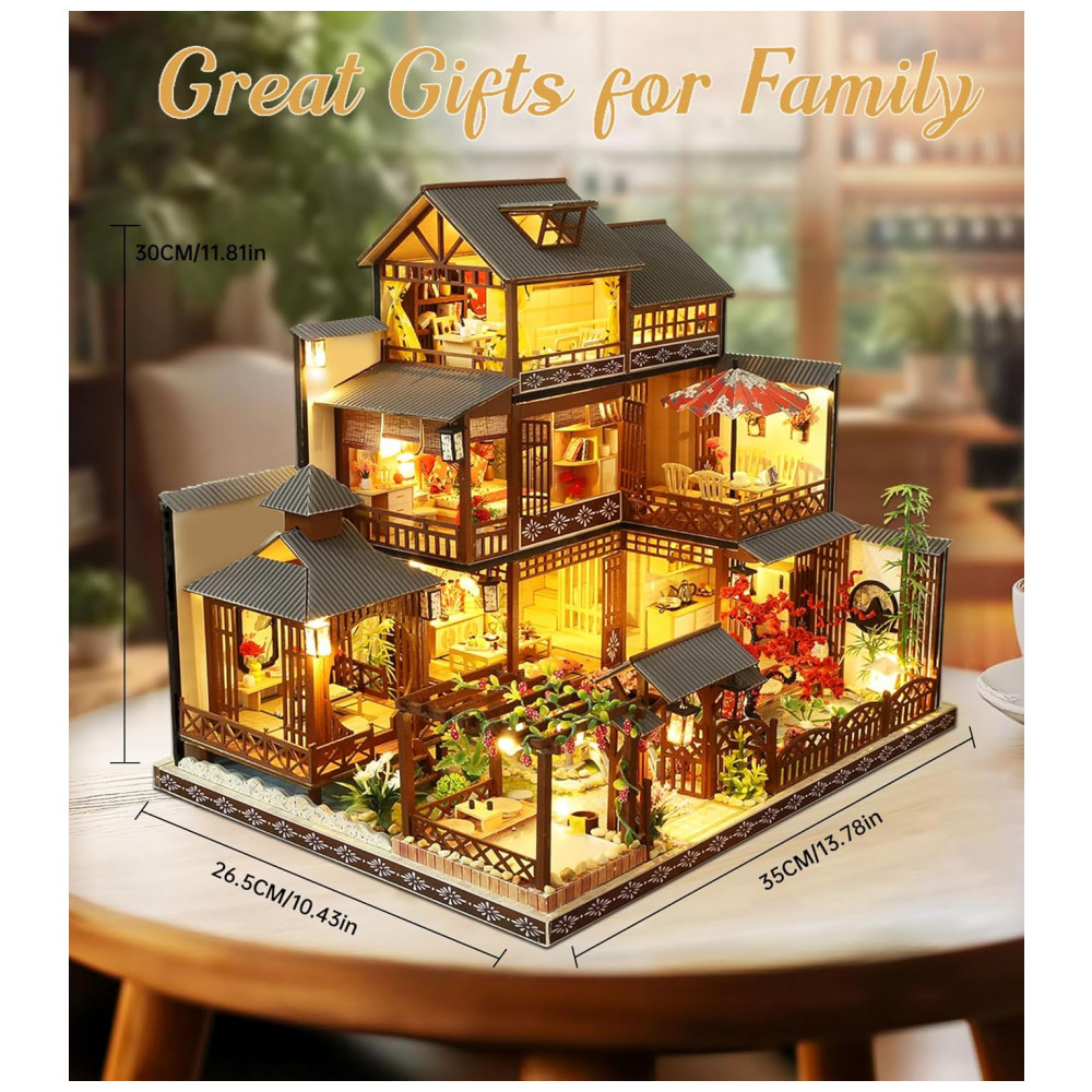 Casa em Miniatura Realista Japonesa com Móveis de Madeira para Adultos e Adolescentes Escala 124 SPILAY