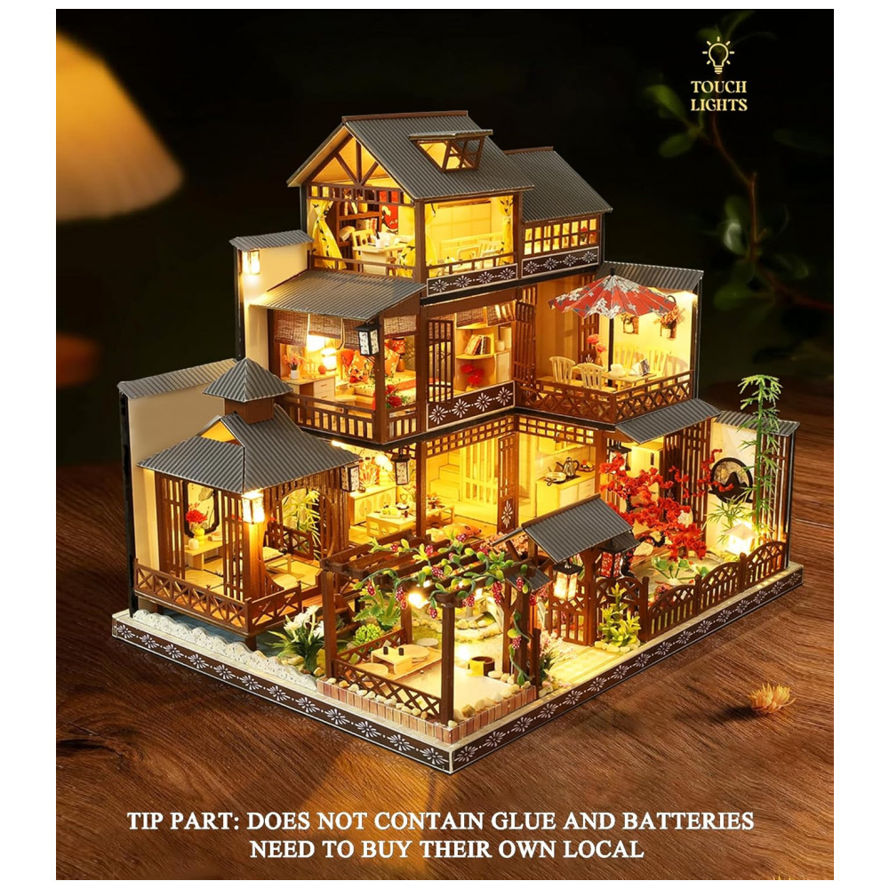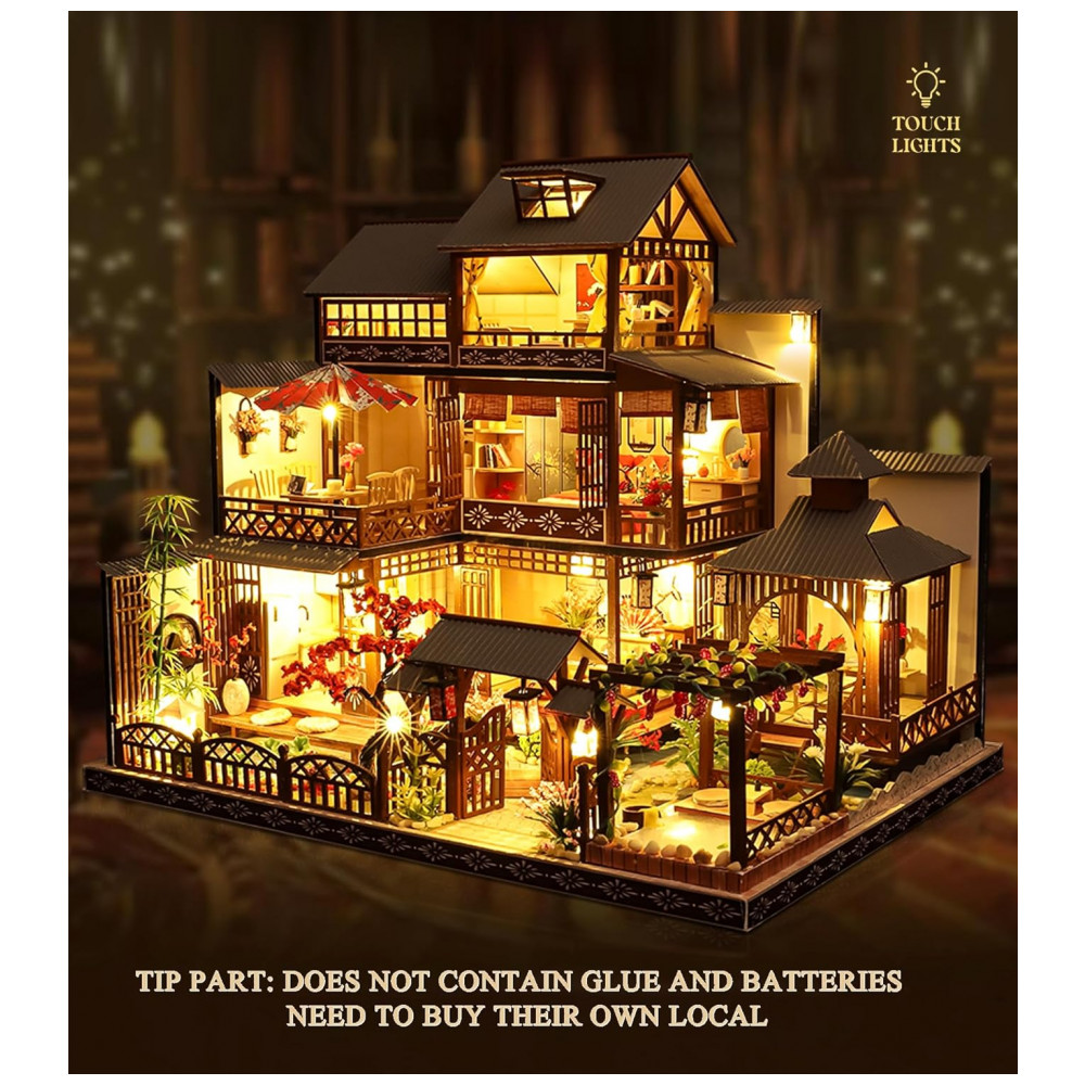 Notas importantes A miniatura da casa de bonecas foi verificada 100 cuidadosamente antes da entrega para garantir que os acessórios estejam completos e sem peças faltando. Sinta se à vontade para entrar em contato conosco se tiver alguma dúvida ao montar. Resolvemos qualquer problema o mais rápido possível. Além disso, você precisa preparar cola líquida de silicone e duas baterias tipo AAA não incluídas