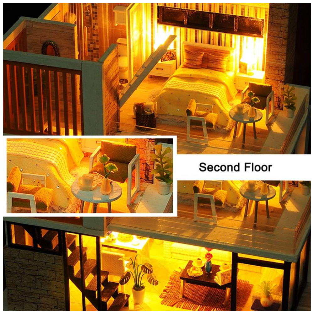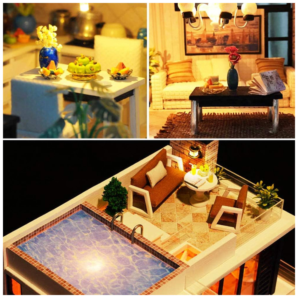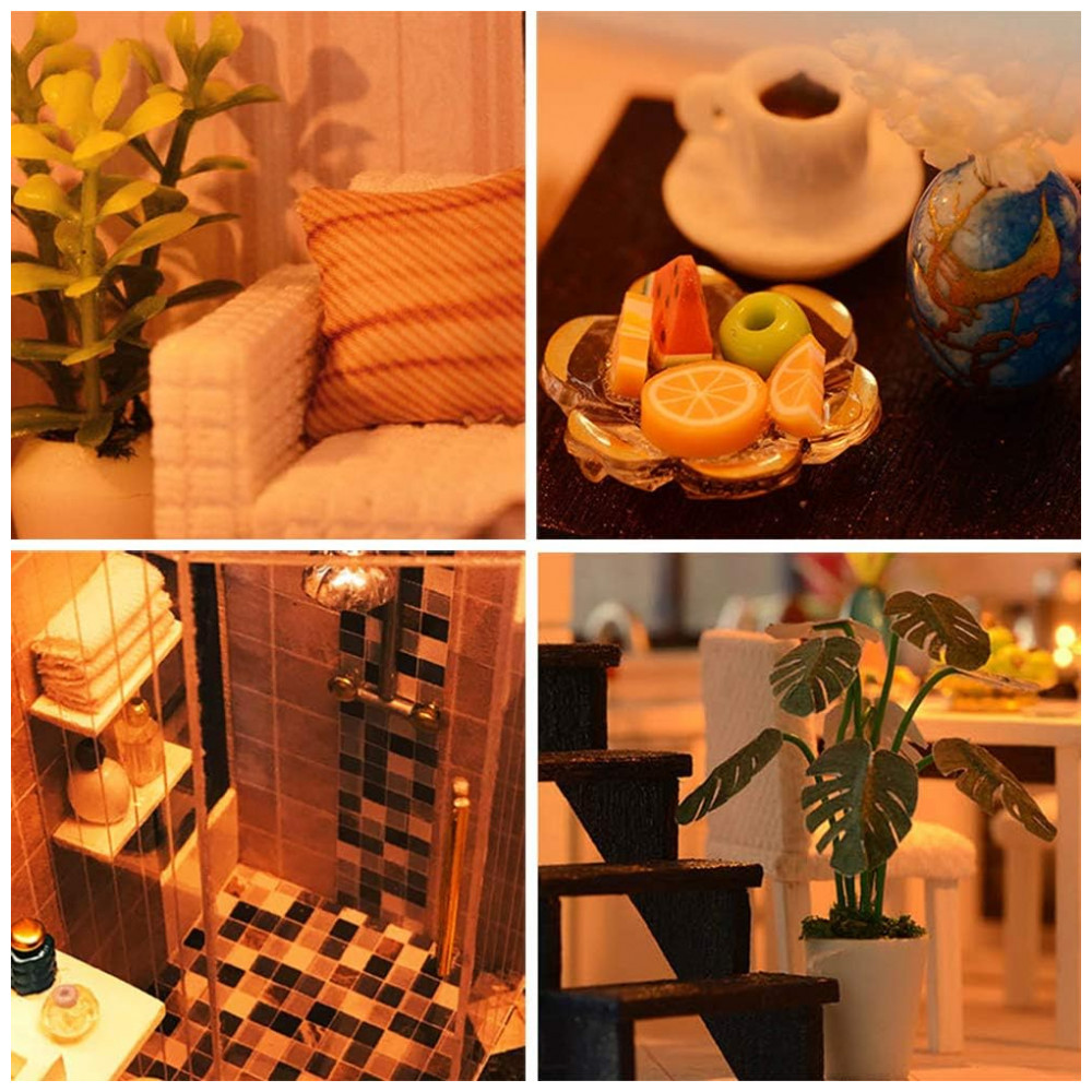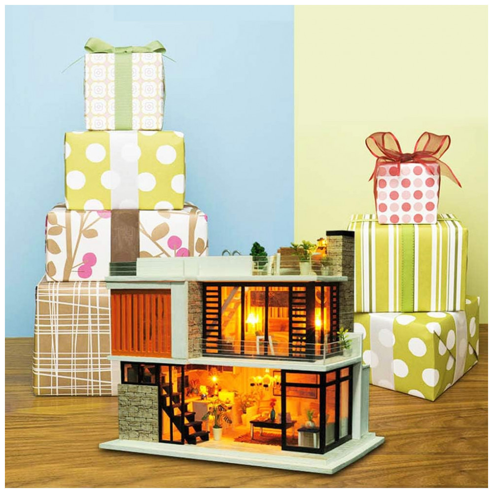 Casa em Miniatura Realista Moderna com Música para Adultos e Adolescentes Escala 124 SPILAY