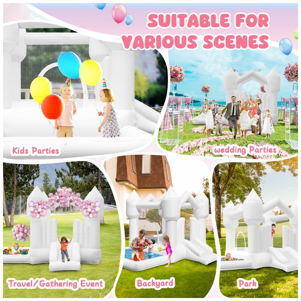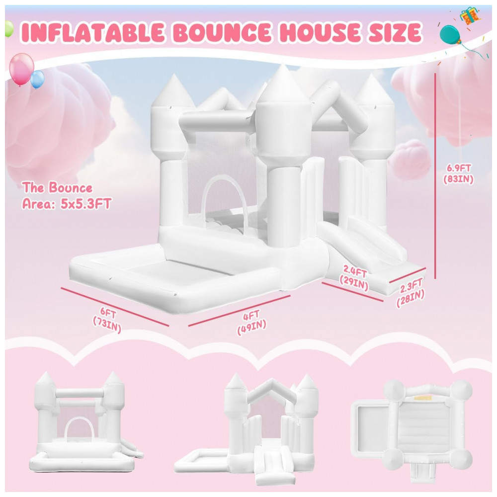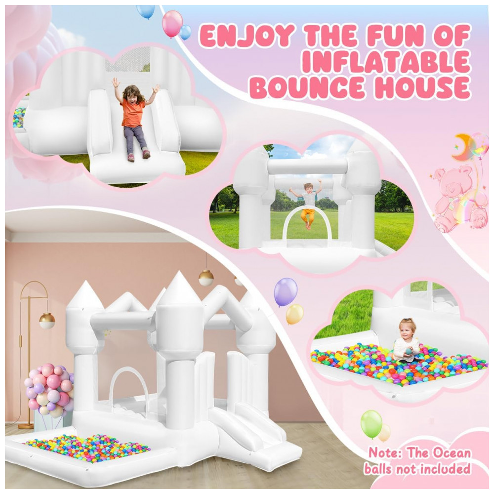 Casa Inflável de Pula-Pula para Crianças – Branca com Escorregador Piscina de Bolinhas e Balões – Diversão e Segurança Garantidas!FINCOME
