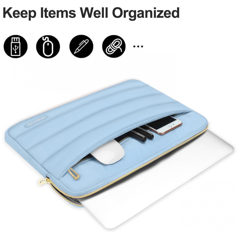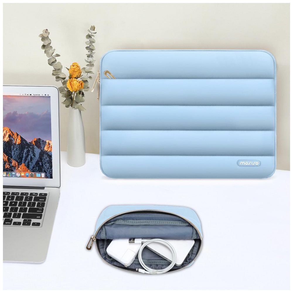 Case para Notebook 15 a 16 polegadas MOSISO Air Blue Capa Puffy Poliéster Bolsa Horizontal Estojo Compatível MacBook HP Dell ASUS Acer Lenovo