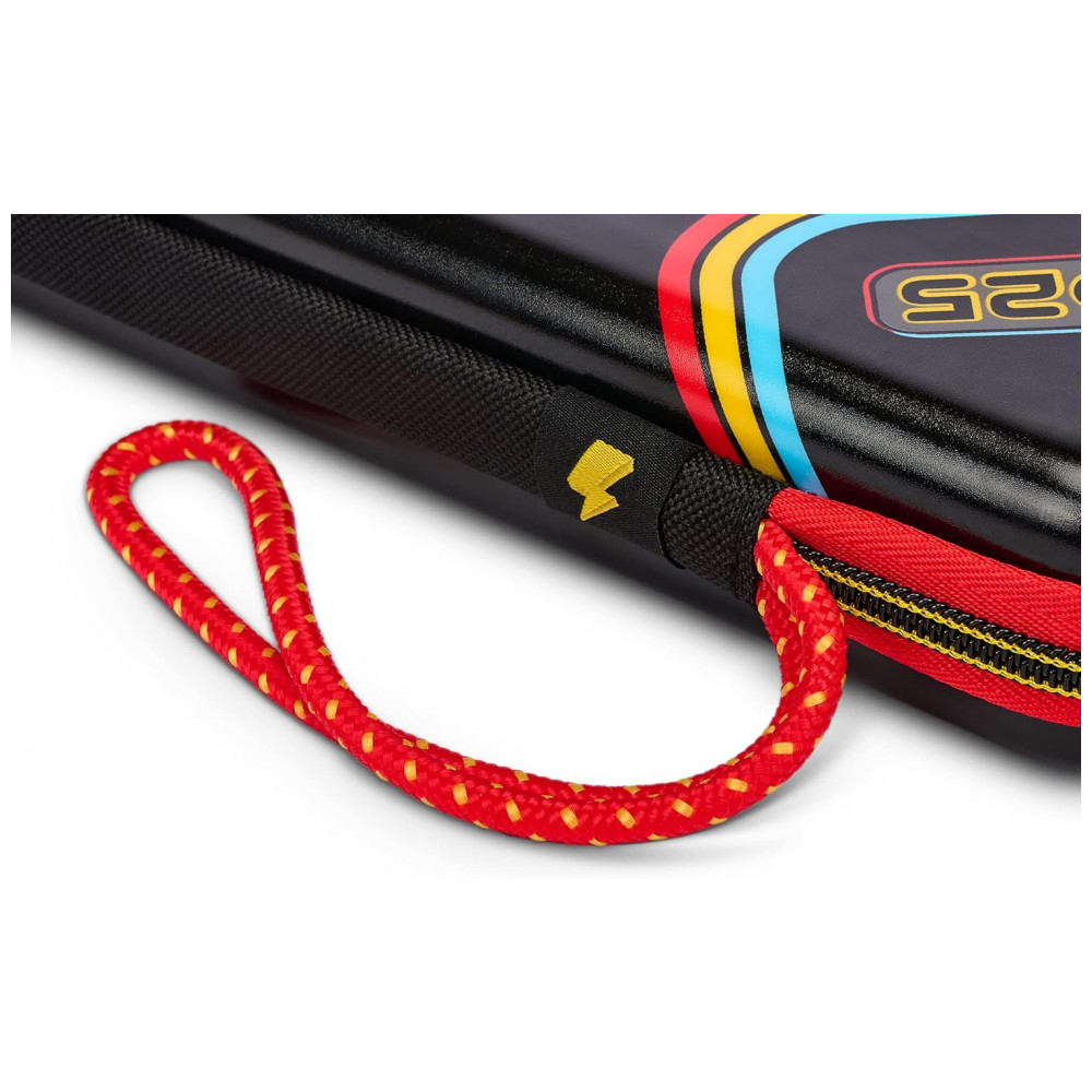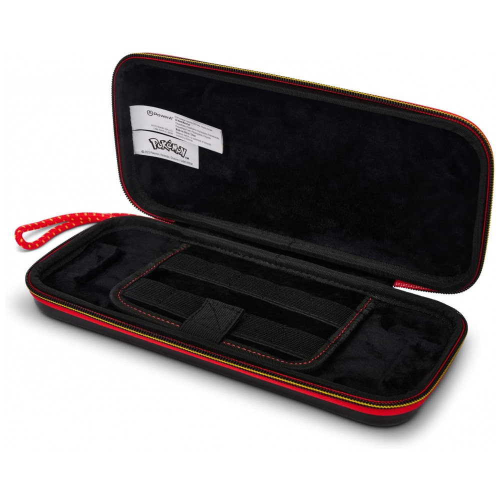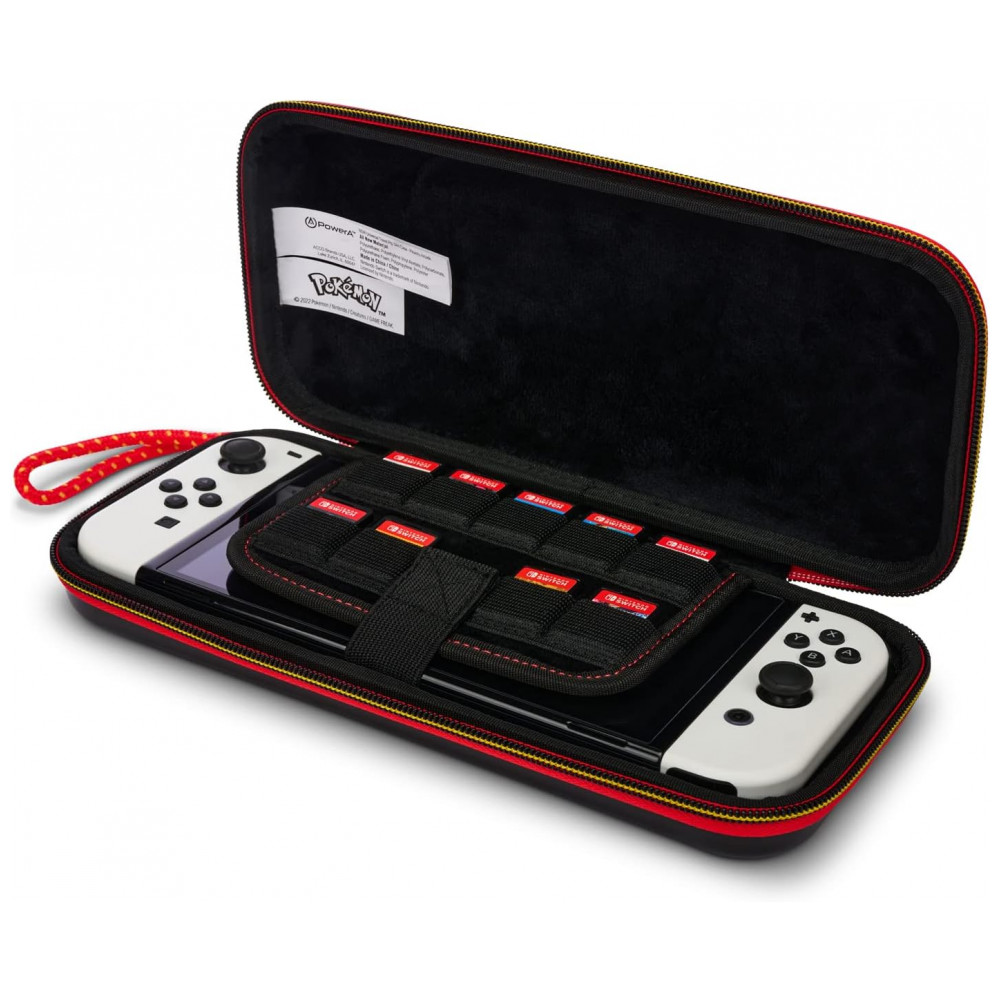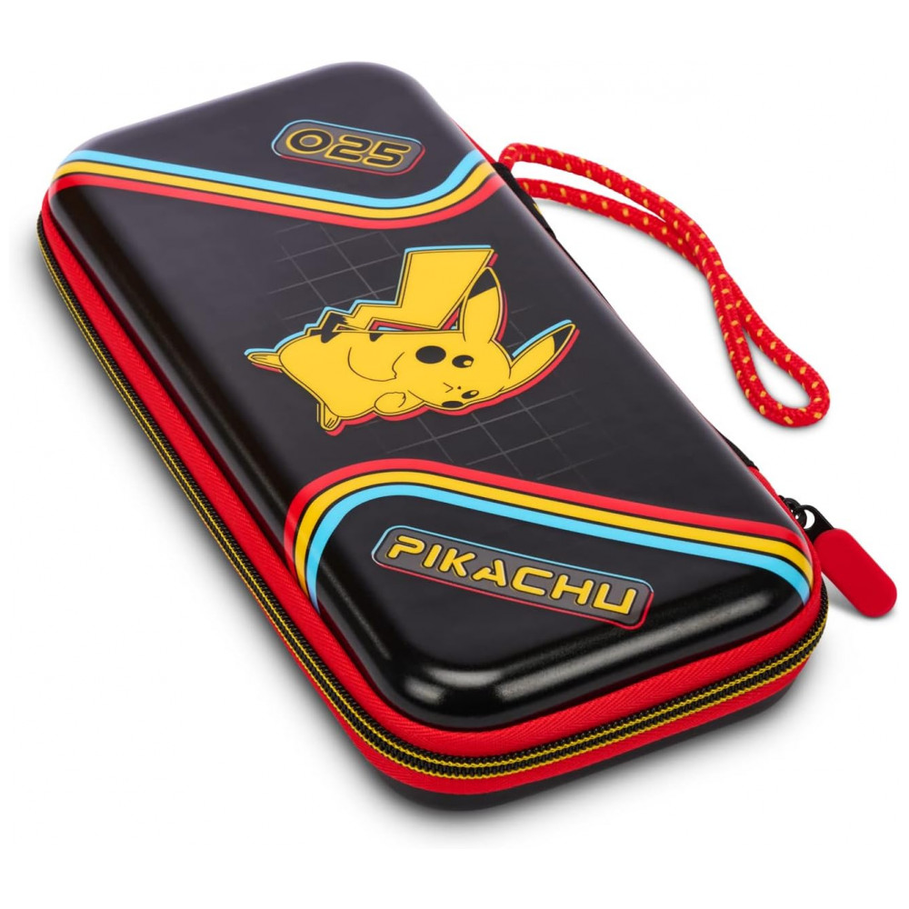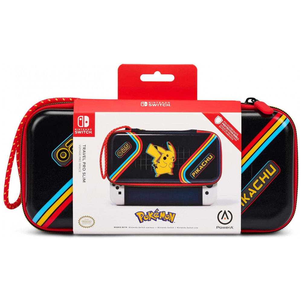 O PowerA Slim Protective Console Case for Nintendo Switch é uma capa protetora rígida do tipo slim, com estampa do Pikachu (entrada #025 da Pokédex Nacional), feita para transportar o Nintendo Switch em segurança com o mínimo de volume na mochila ou bolsa. A parte externa em policarbonato forma uma concha rígida resistente a impactos leves, arranhões e pressão, acompanhada de alça de pulso e zíper robusto para facilitar o transporte diário.