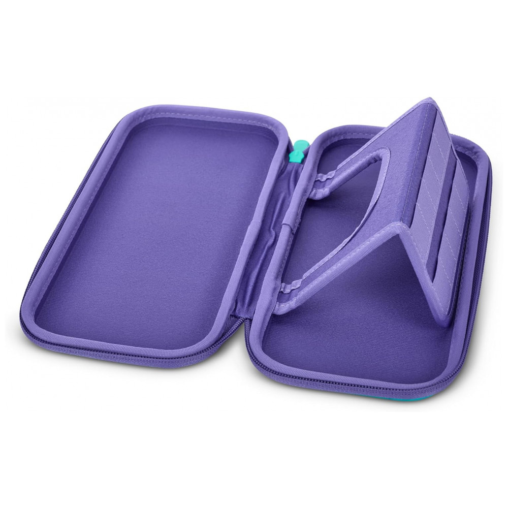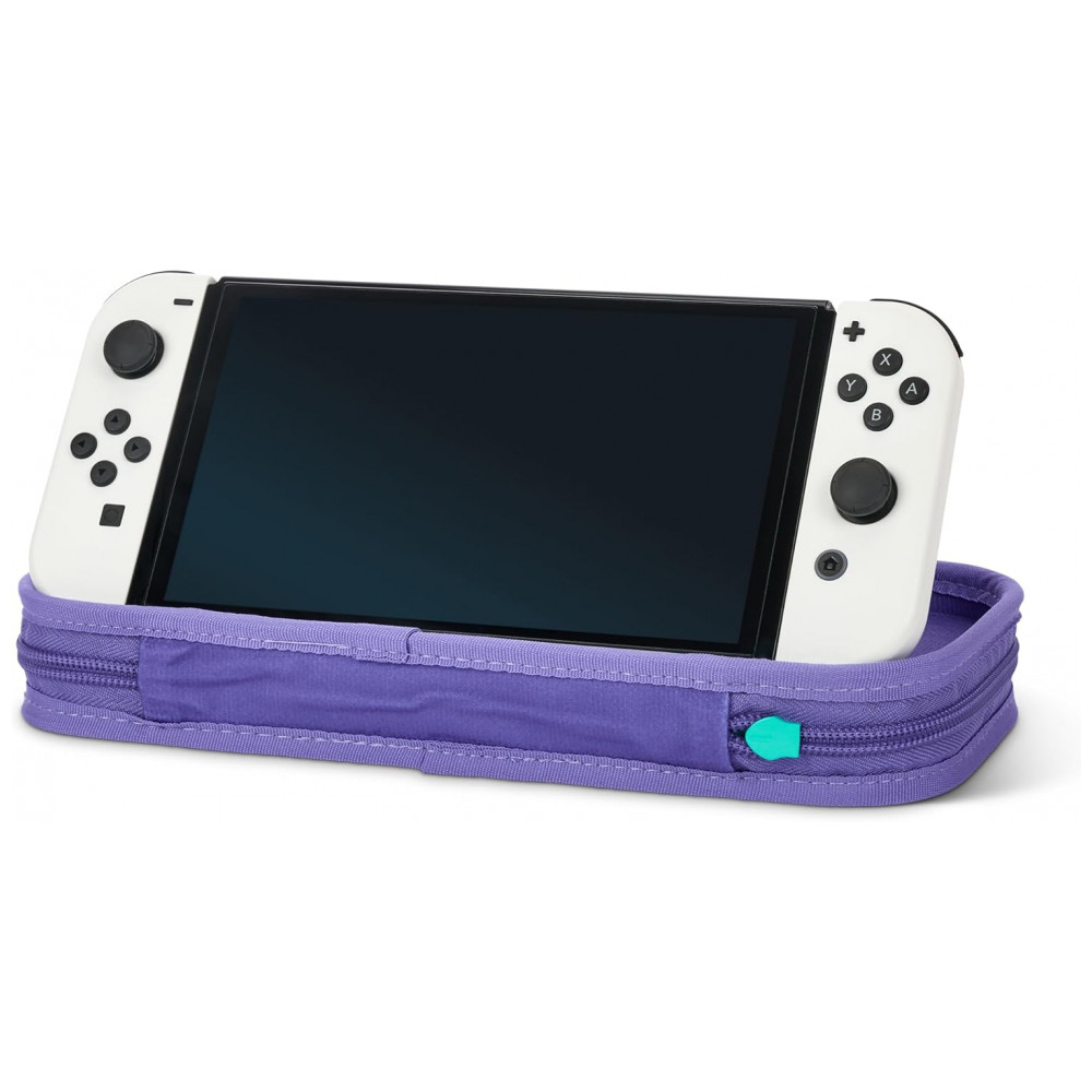 O PowerA Slim Protective Console Case Tie-dye Pikachu & Eevee é uma case rígida fina desenvolvida para proteger o Nintendo Switch em modo portátil, com estampa temática colorida de Pikachu e Eevee em estilo tie-dye. A parte externa traz acabamento resistente com alça de mão e zíper durável, formando uma estrutura firme para transporte em mochilas, bolsas ou na mão, protegendo o console contra arranhões e pequenos impactos.