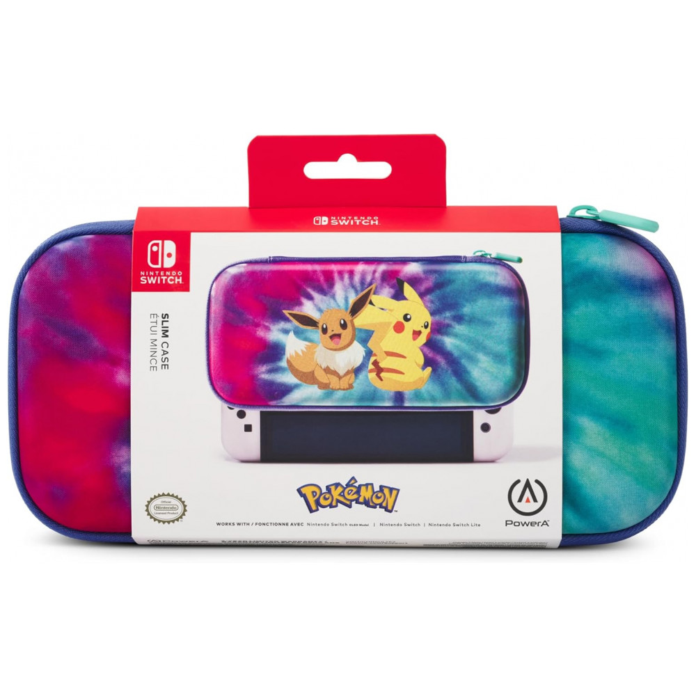 Case PowerA Slim Protective para Nintendo Switch Tie-dye Pikachu & Eevee com suporte de mesa e espaço para 10 jogos