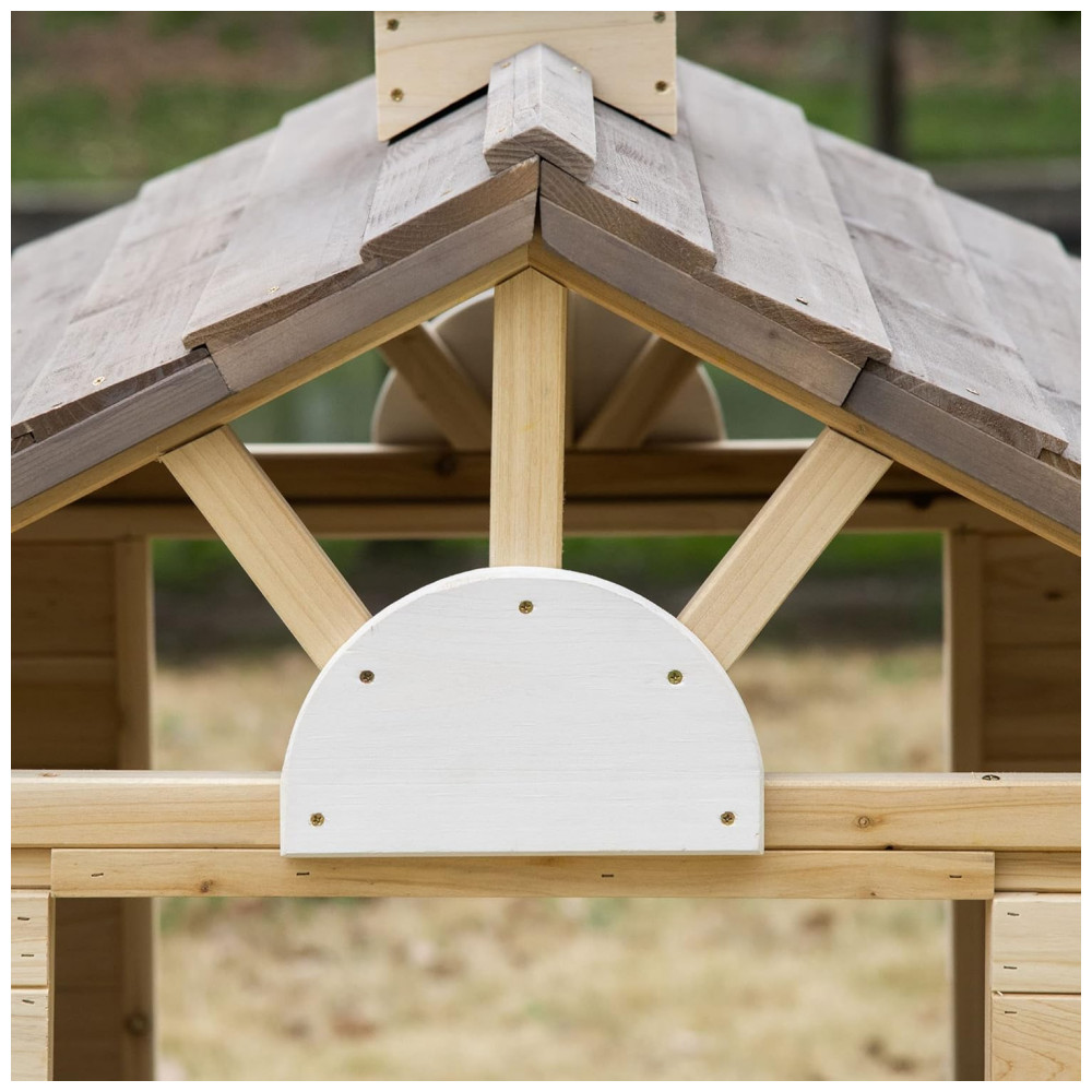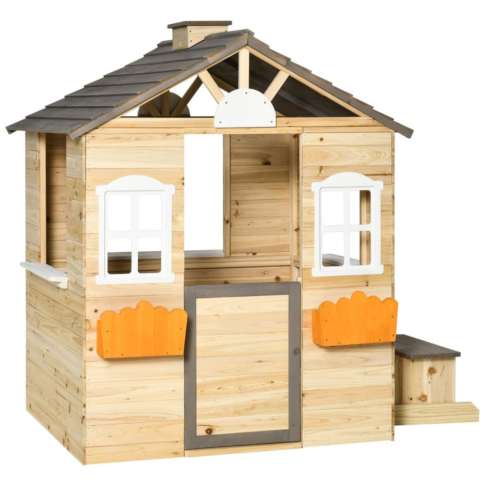 A FOINFUN apresenta a Casinha de Brinquedo All Wooden Outdoor Playhouse, perfeita para crianças de 3 a 6 anos. Fabricada com 100% madeira de abeto de alta qualidade, esta casa de brinquedo ao ar livre é ideal para criar um espaço divertido e estimulante para os pequenos. Com dimensões gerais de 113 cm de comprimento, 93 cm de largura e 134 cm de altura, a casinha inclui uma porta, duas janelas, dois suportes para vasos de flores e três estações de serviço.