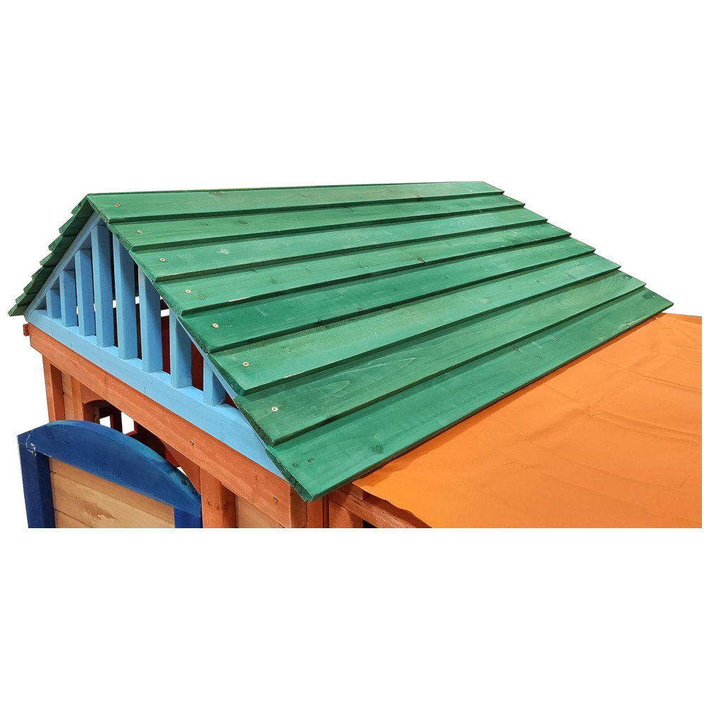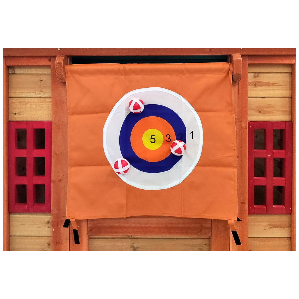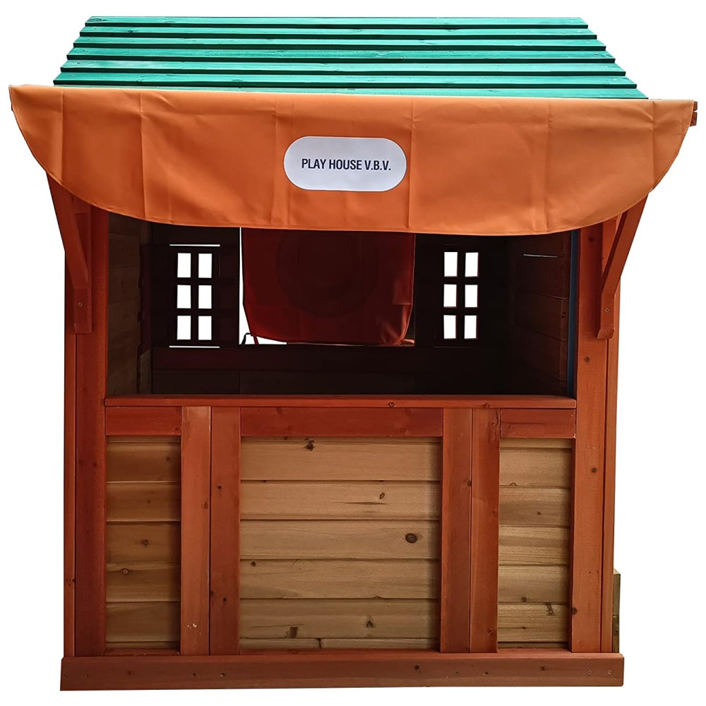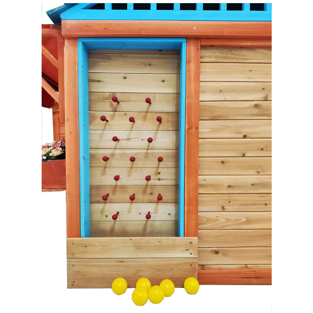 A AOCOROE apresenta a casa de brinquedo de madeira ao ar livre perfeita para crianças. Certificada pelas normas ASTM F963, CPSIA e SOR, esta casa é construída com 100% madeira de abeto de alta qualidade. Com dimensões gerais de 155 cm de comprimento, 116 cm de largura e 162 cm de altura, ela vem equipada com uma porta, duas janelas, uma estação de serviço com toldo, parede de bolas e um jogo de Tetris com lançamento de dardos.