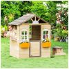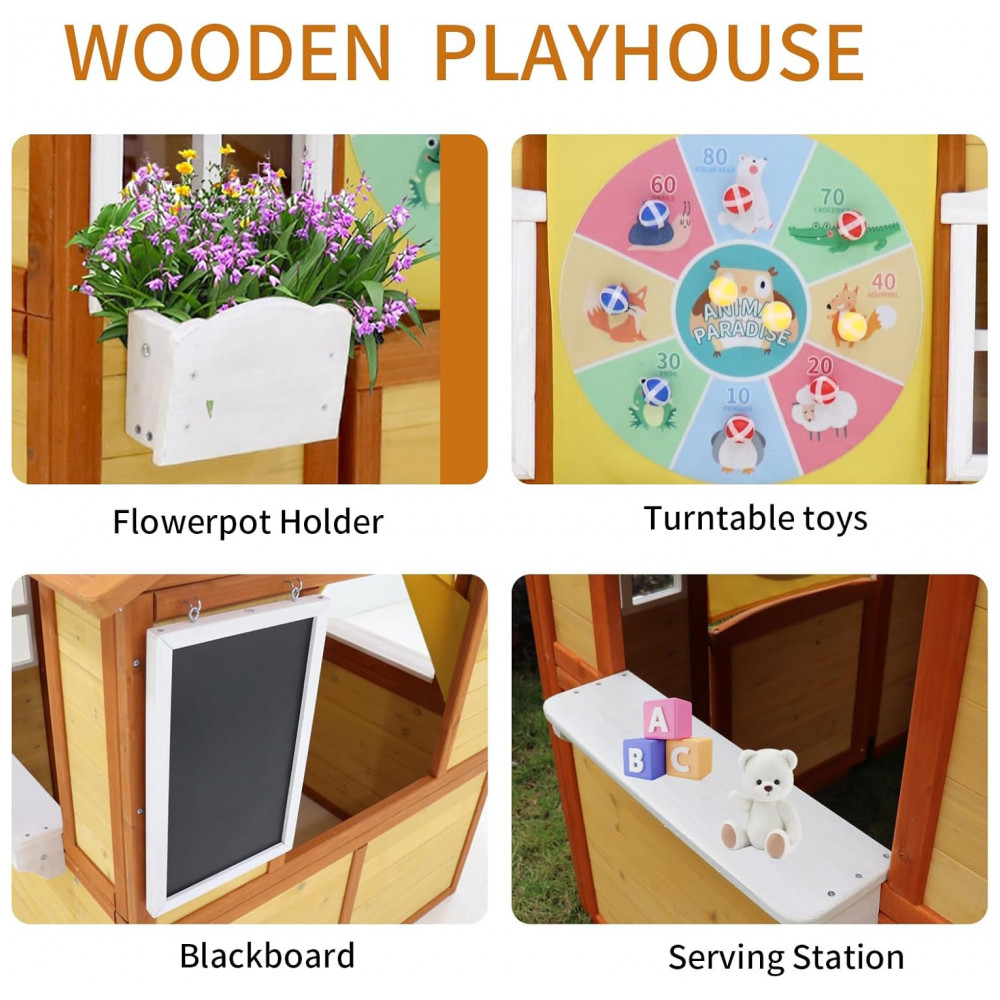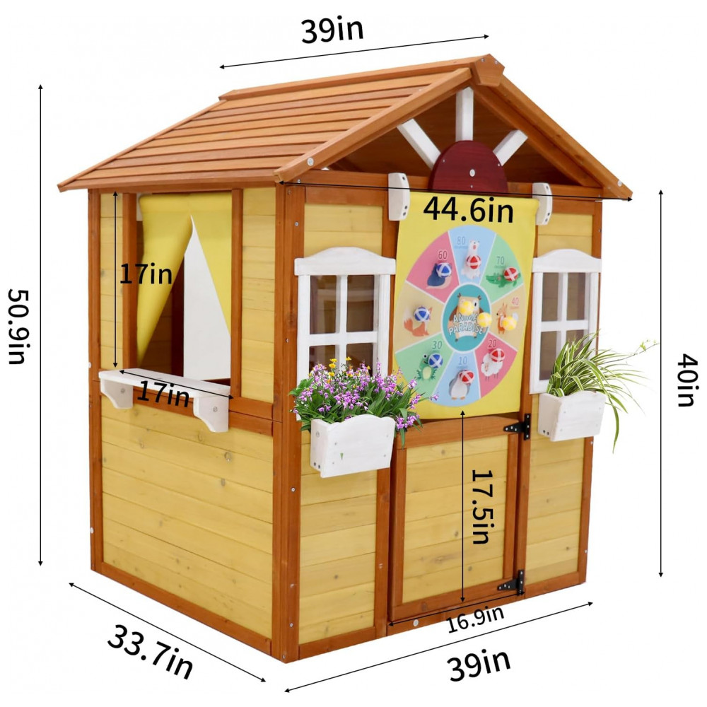 Casinha Infantil de Madeira para Área Externa com Porta 2 Janelas e Suportes para Vasos de Flores Idade 3 a 6 Anos Foinfun Amarela e Marrom