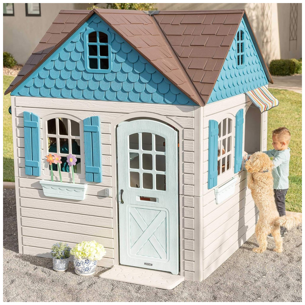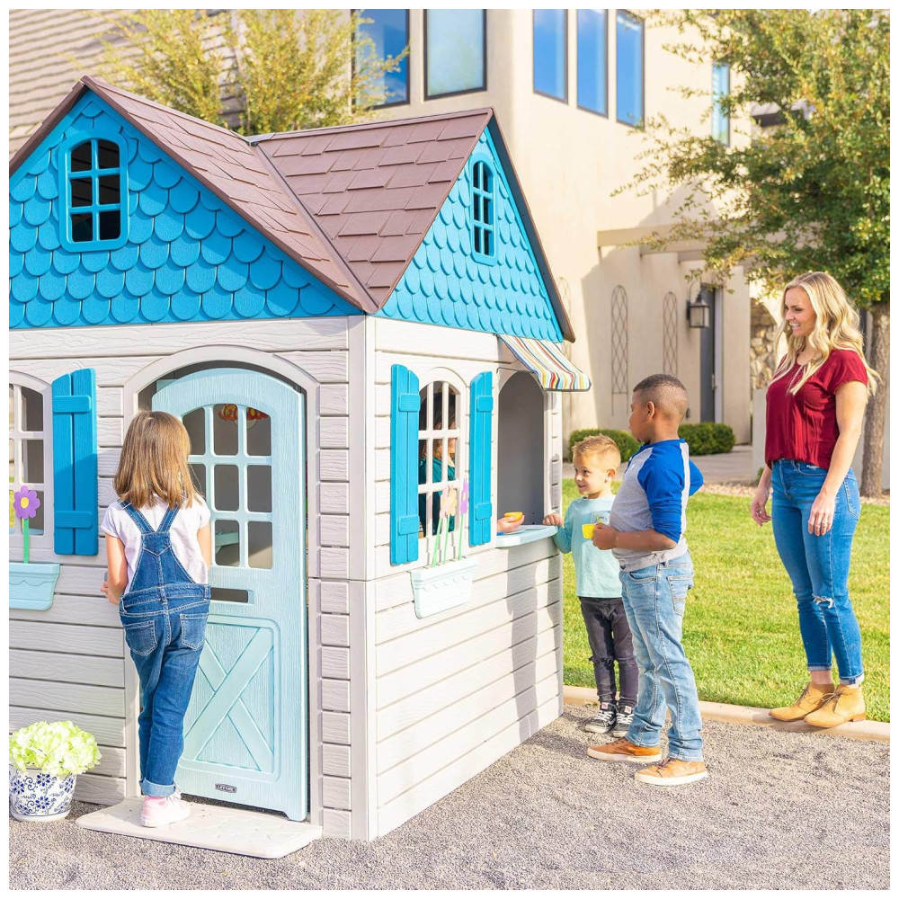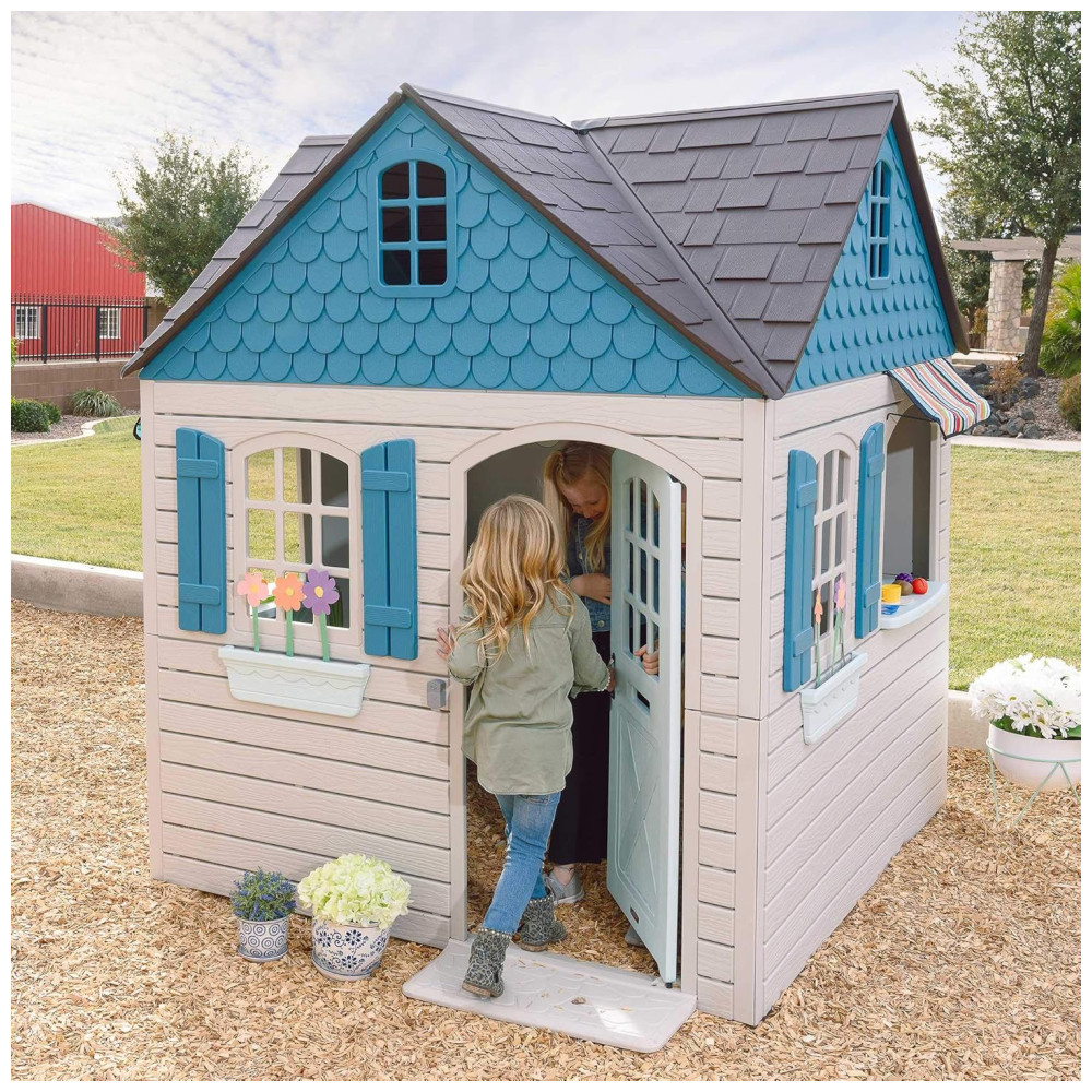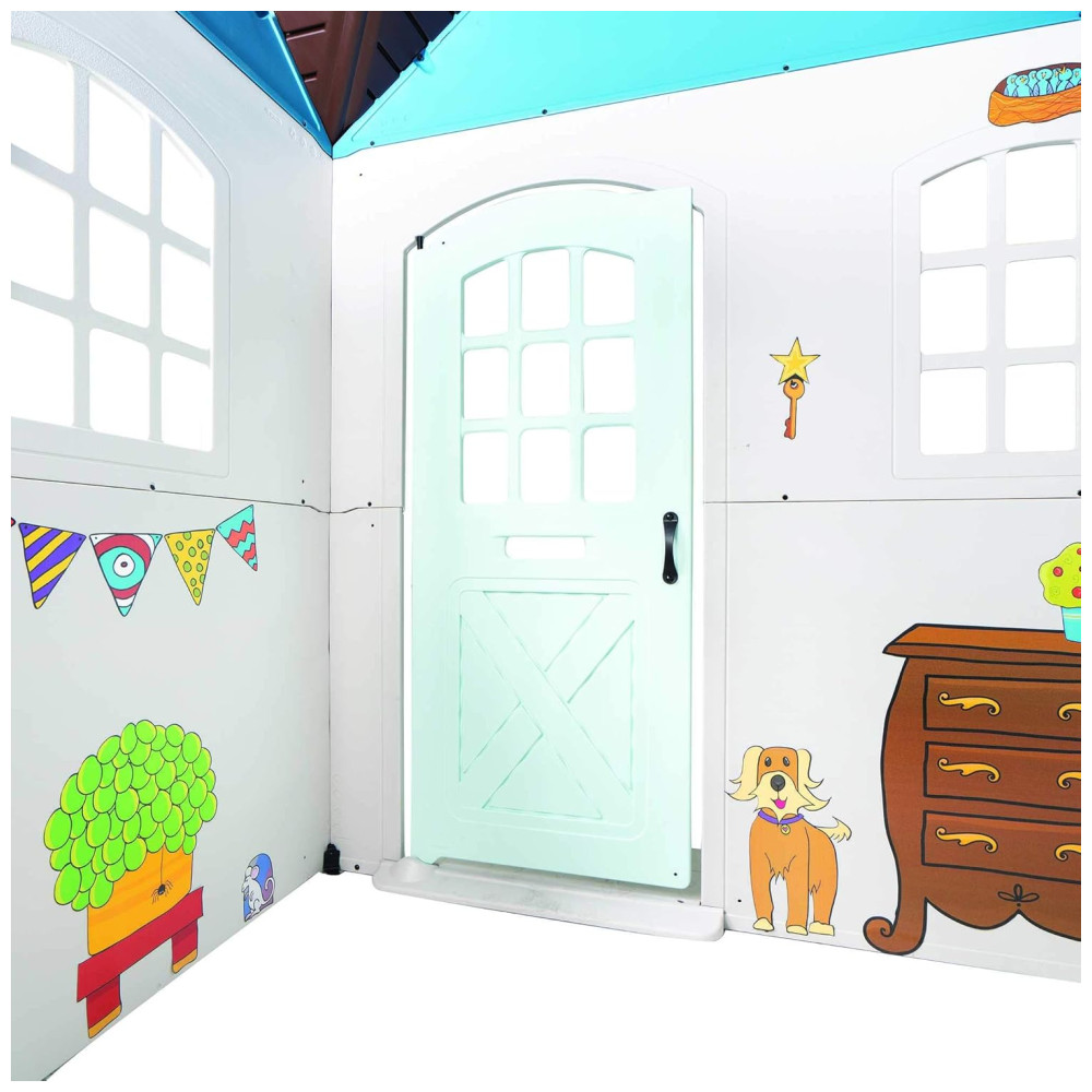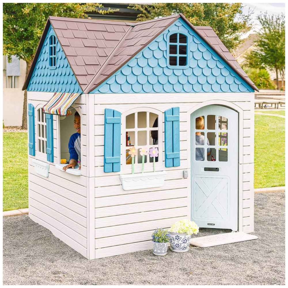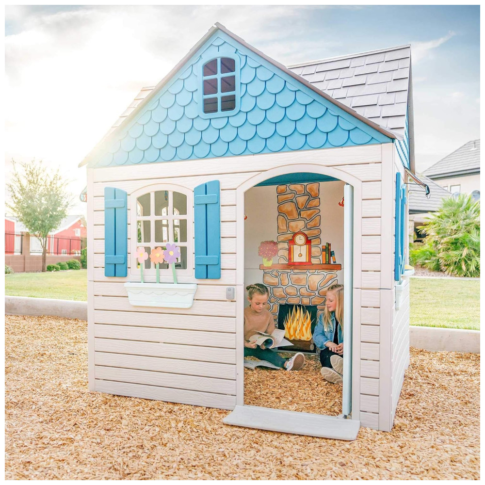 Casinha Infantil de Plástico Resistente para Área Externa com Nóveis Plantas Animais de Estimação e Muito Mais Lifetime Branco e Azul