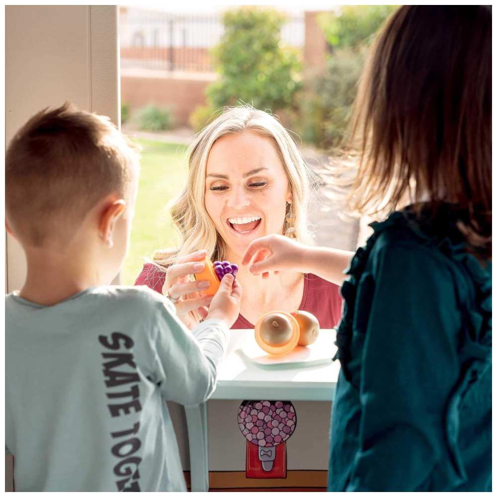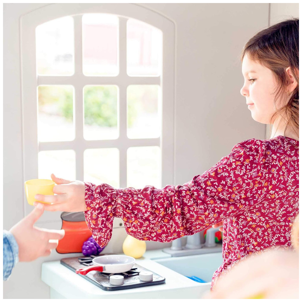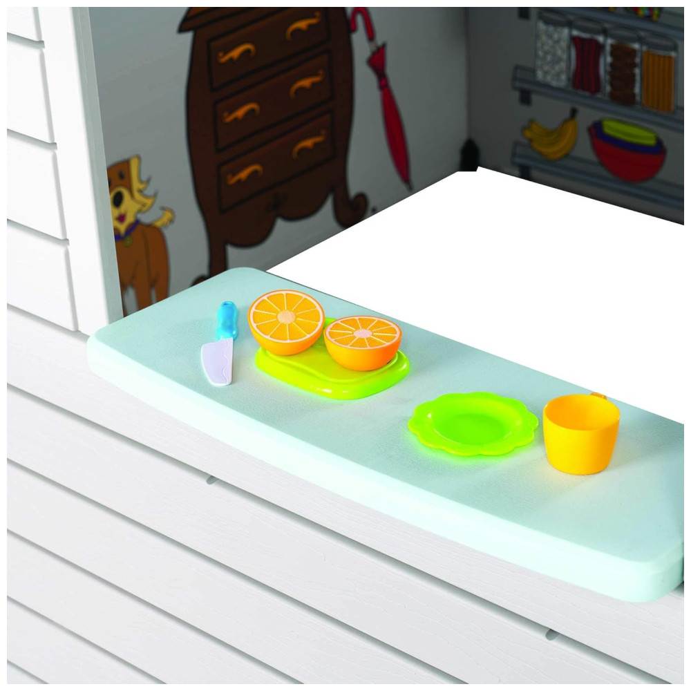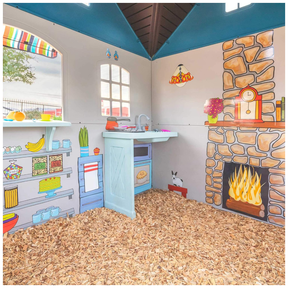 Apresentamos a Playhouse Lifetime, um espaço encantador onde as crianças podem criar suas próprias regras e decorar como desejarem usando adesivos reutilizáveis. Este ambiente divertido inclui uma porta com campainha, vitrines com prateleiras e uma pia equipada com pratos de brinquedo e comida, oferecendo uma experiência lúdica completa.