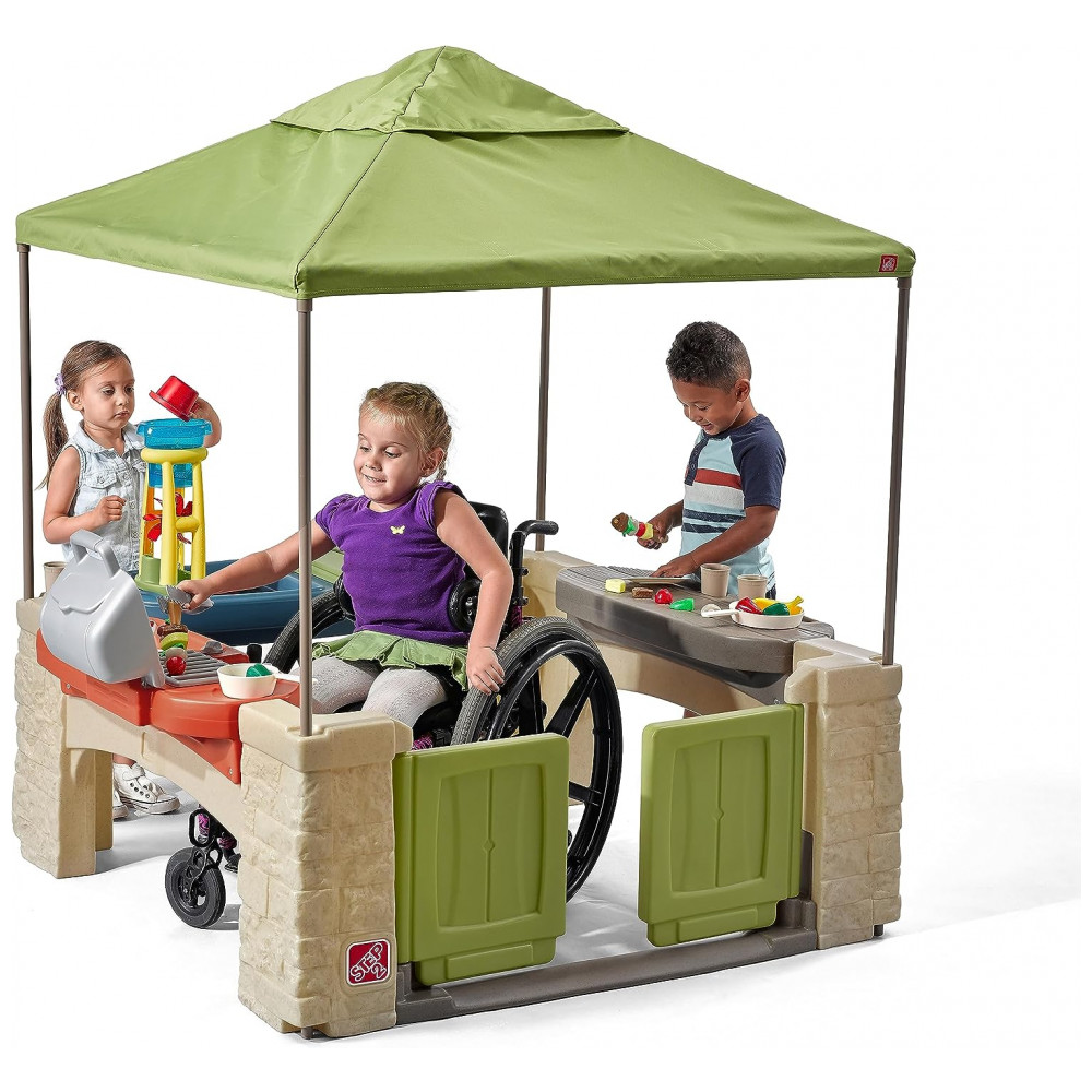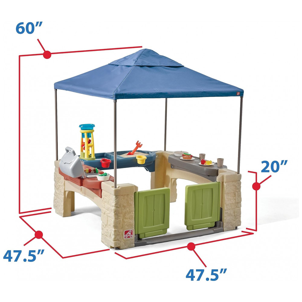 PLAYHOUSE COBERTO DO CANOPY As crianças podem ter sua própria festa no quintal com o Step2 All Around Playtime Patio and Canopy. É um playset infantil sombreado e aberto em estilo de pavilhão com cores neutras e detalhes realistas de pedras empilhadas para um design atraente.