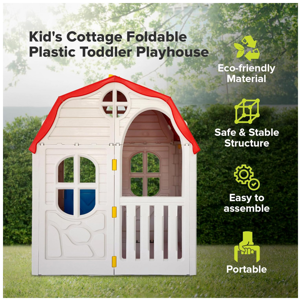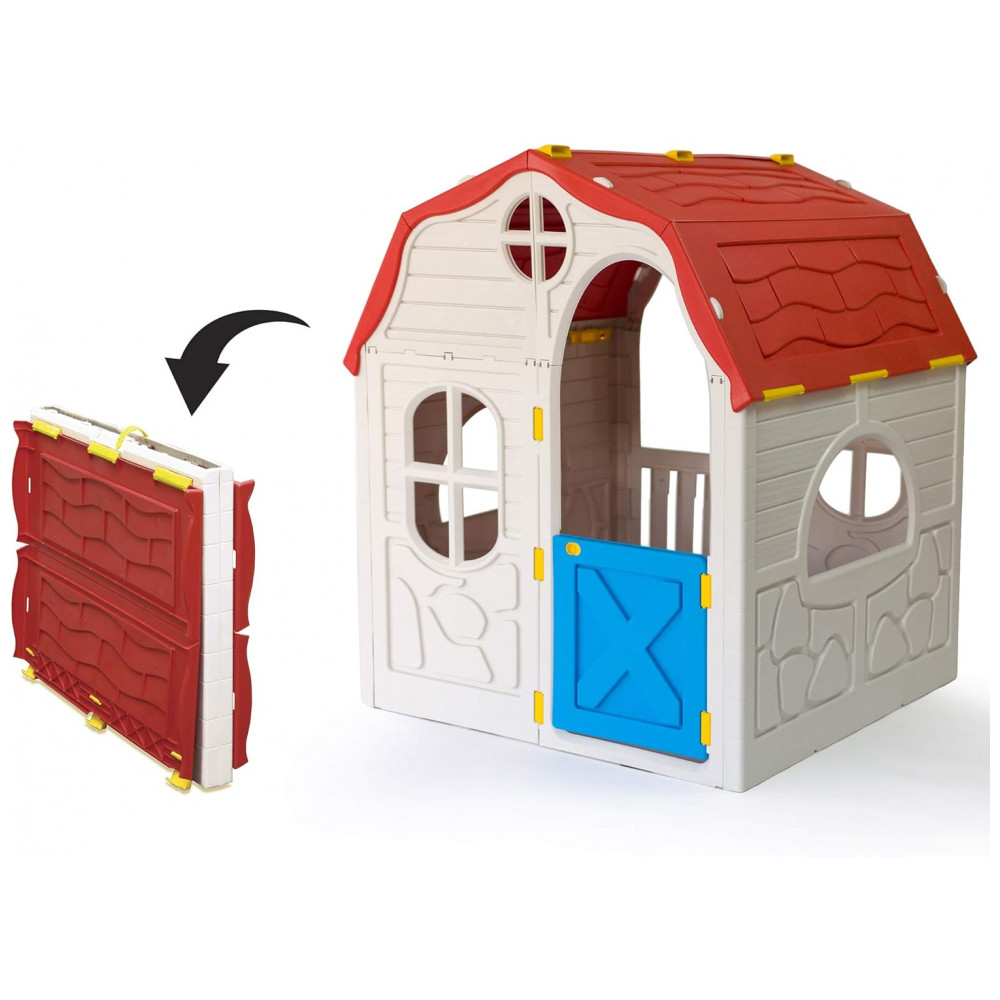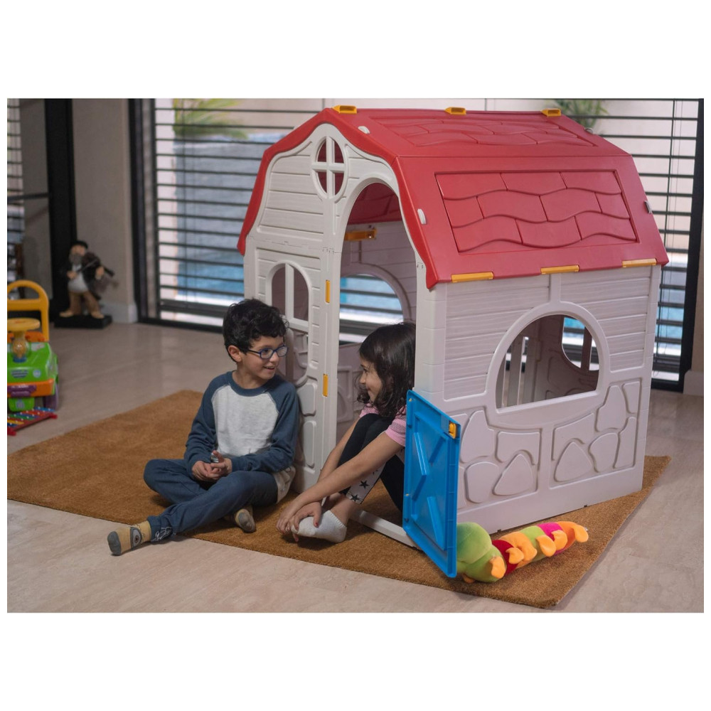 CARACTERÍSTICAS DE SENSAÇÃO REAL Sensação de casa de campo real com cores vivas, telhado de telhas, janelas abertas, texturas de parede irregulares e uma porta com fechadura apresenta cantos arredondados com um design aberto para proteger seus pequenos enquanto brincam.