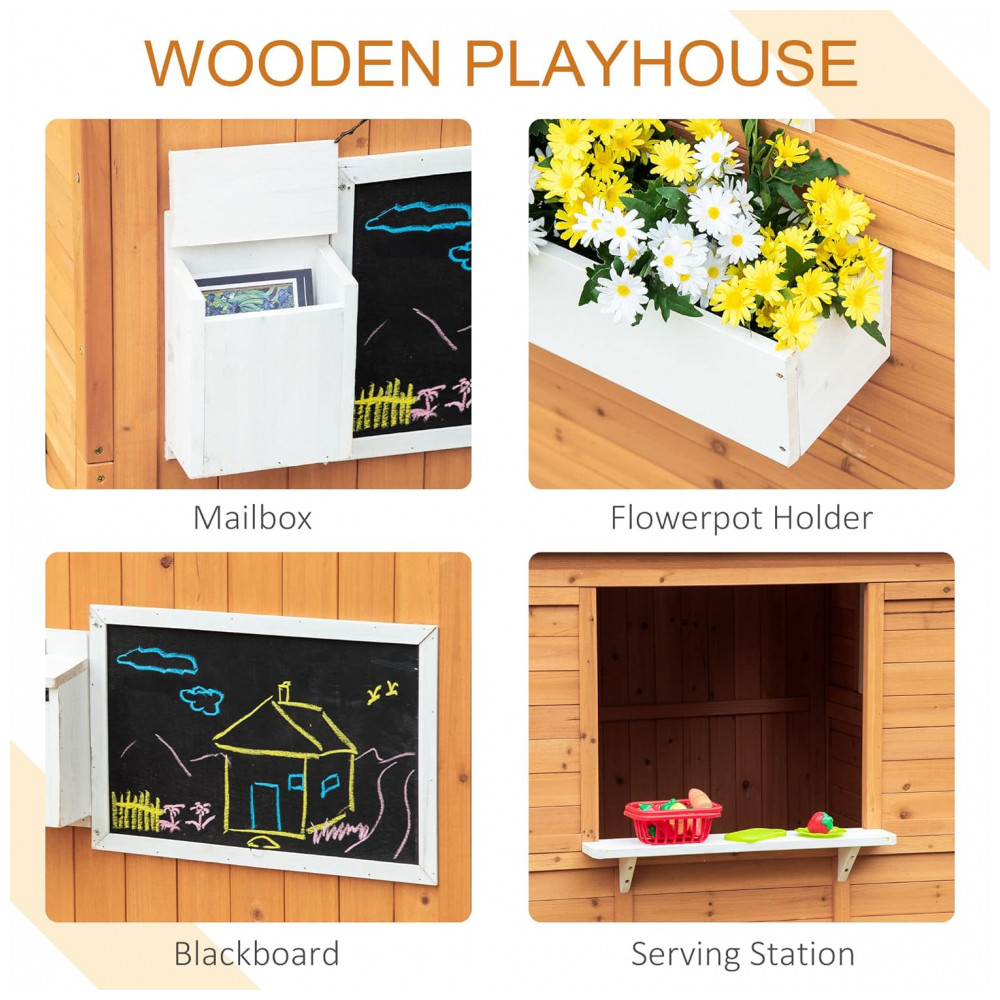 Casinha Infantil Interativa para Crianças de 3 a 8 Anos com Porta de Trabalho Outsunny Marrom