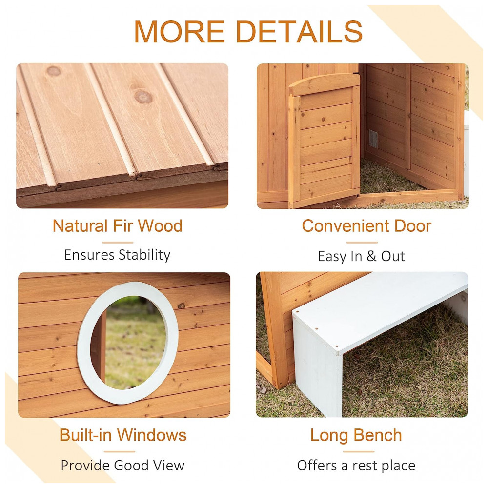 FÁCIL ACESSO A casinha de brincar ao ar livre com telhado inclinado tem três janelas para permitir a circulação de ar e manter os pequenos confortáveis. A porta de meio tamanho permite que seus filhos entrem e saiam de casa rapidamente.