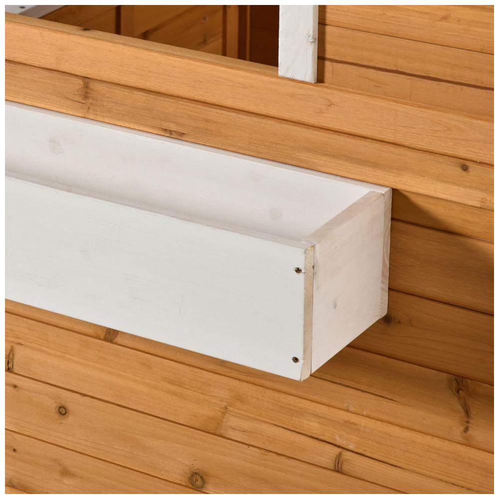 ESTRUTURA SÓLIDA O teatro infantil ao ar livre é feito com madeira maciça de abeto, formando uma estrutura forte para uso diário. Adequado para uso ao ar livre.