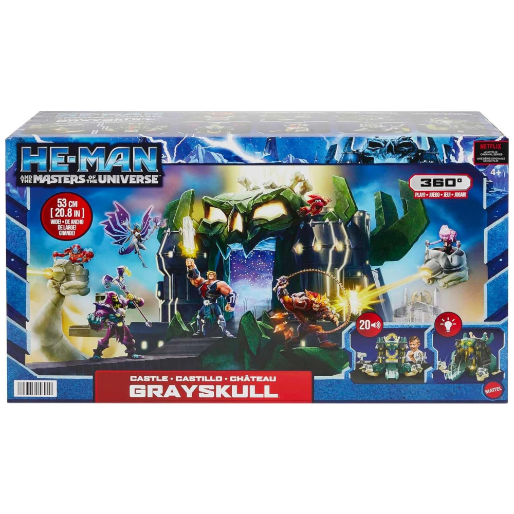 Reviva todas as batalhas épicas do bem contra o mal de Eternia com o conjunto do Castelo Grayskull. Este design de brinquedo é fiel à série animada da Netflix e apresenta luzes e sons dramáticos, uma ponte desdobrável, estações de batalha dobráveis, cápsulas removíveis com mísseis e acessórios de batalha. As cores e decorações podem variar. Este conjunto icônico é o centro do conflito do bem contra o mal em HeMan e os Mestres do Universo. Com um design autêntico da série animada e recursos funcionais, ele pode suportar ilimitado jogue e ser o centro de qualquer coleção de HeMan e dos Mestres do Universo. A ponte da mandíbula pode ser aberta usando a espada incluída. Os olhos da caveira brilham e um rugido gigantesco significa as aventuras internas à medida que se abre dramaticamente O botão lateral também abre o maxilar. Os colecionadores vão querer fazer deste conjunto a peça central para uma extensa exibição de HeMan e os Mestres do Universo. Outras figuras vendidas separadamente e sujeitas a disponibilidade. É um ótimo presente para qualquer fã de MOTU com 6 anos ou mais.