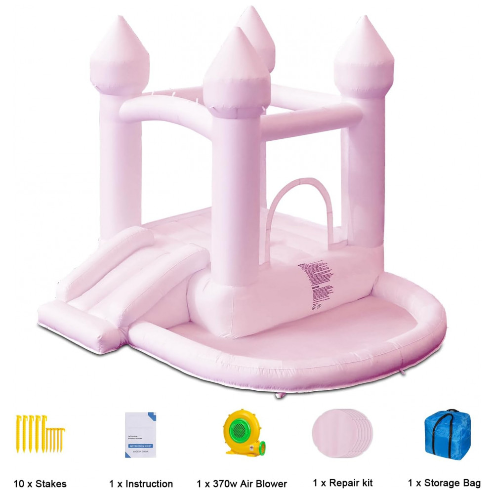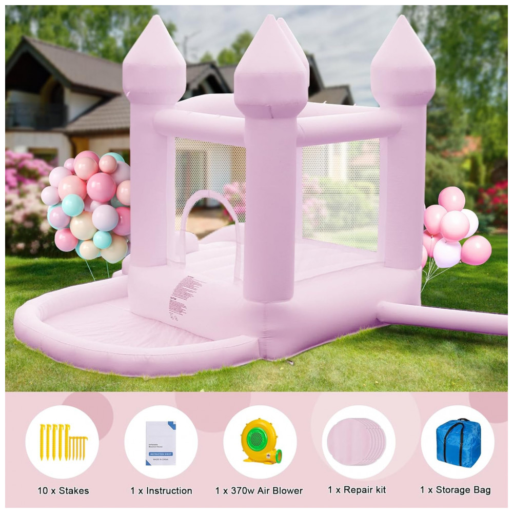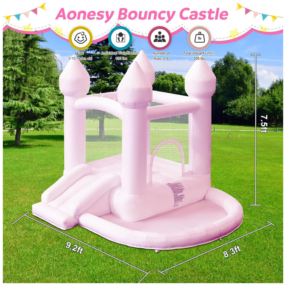 Aproveite momentos divertidos e seguros com o castelo inflável da marca AONESY! Certificado pela segurança e qualidade, conta com um potente soprador de 370W para suportar os pulos das crianças. Cercas de proteção evitam quedas acidentais. Fácil de montar em apenas 2 minutos, tanto em ambientes internos quanto externos. Com dimensões de 9,28 x 8 x 2,74 pés, pode ser usado em diversos locais. A área de pulo espaçosa e o pula-pula podem ser preenchidos com diferentes materiais, estimulando o equilíbrio e a saúde física das crianças. Ideal para festas e eventos, além de poder ser decorado com balões e flores.