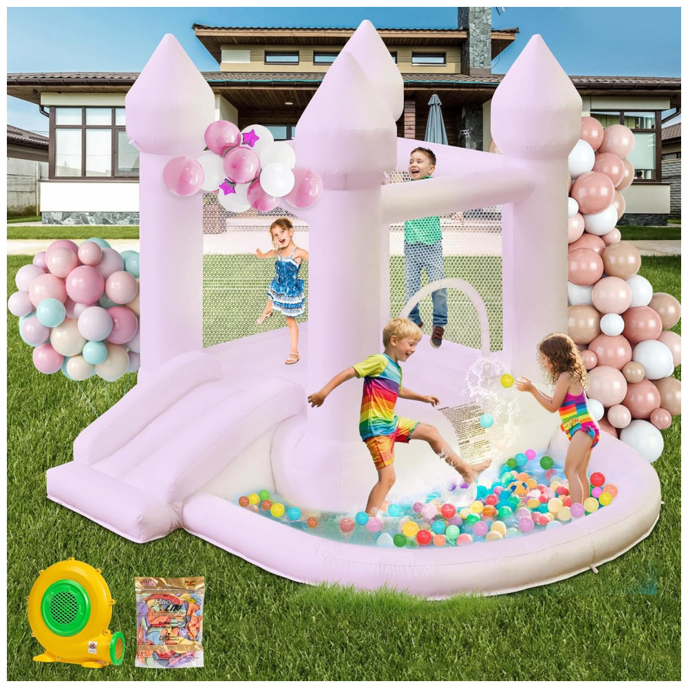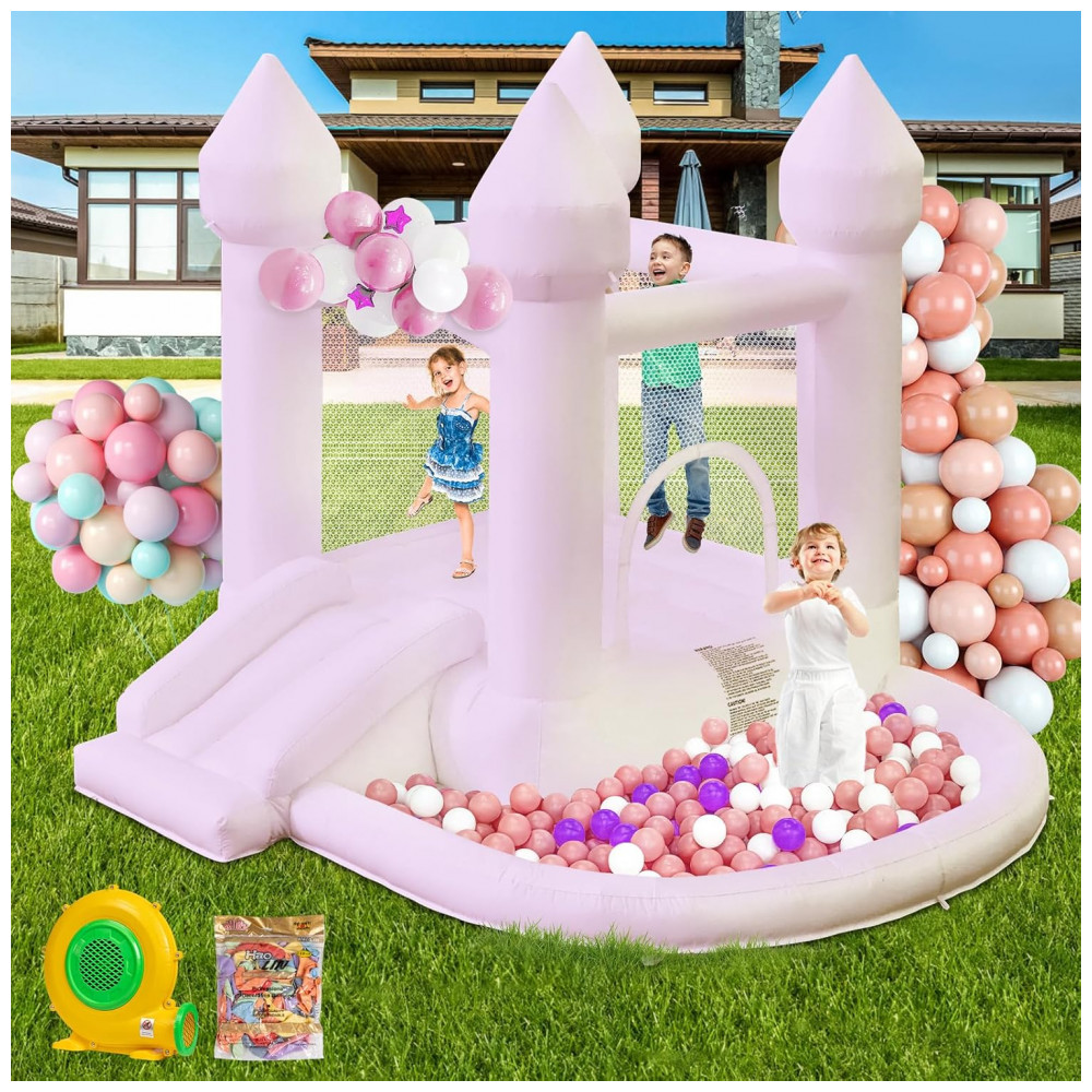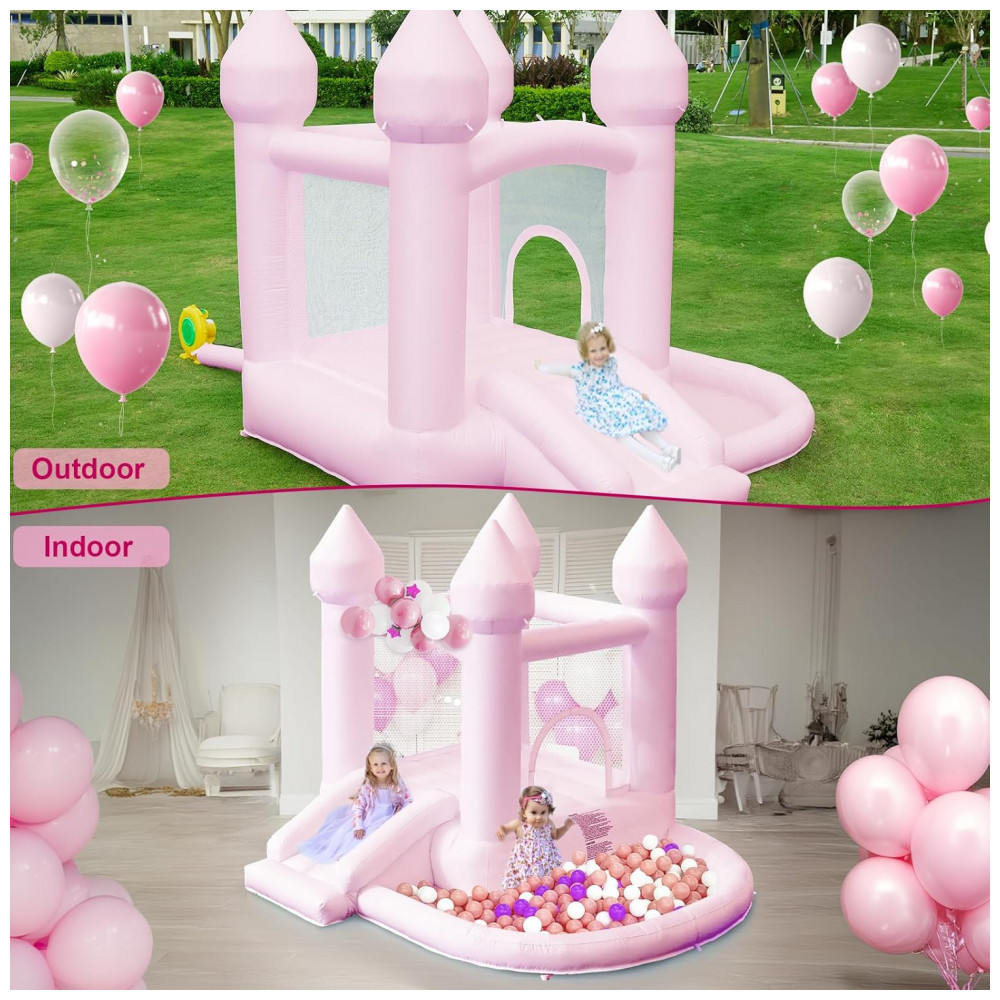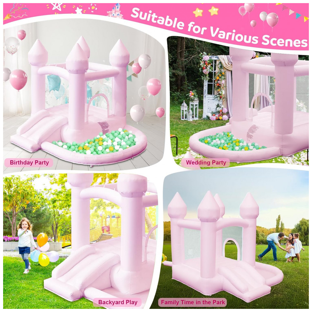 Aproveite momentos divertidos e seguros com o castelo inflável da marca AONESY! Certificado pela segurança e qualidade, conta com um potente soprador de 370W para suportar os pulos das crianças. Cercas de proteção evitam quedas acidentais. Fácil de montar em apenas 2 minutos, tanto em ambientes internos quanto externos. Com dimensões de 9,28 x 8 x 2,74 pés, pode ser usado em diversos locais. A área de pulo espaçosa e o pula-pula podem ser preenchidos com diferentes materiais, estimulando o equilíbrio e a saúde física das crianças. Ideal para festas e eventos, além de poder ser decorado com balões e flores.