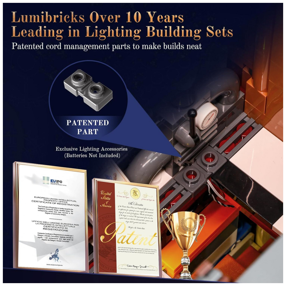 O diorama interno abriga guardião mecânico, frascos de poções multicoloridas luminescentes, ovo de ave incubando e placa de sinalização removível, ampliando possibilidades de storytelling. Como conjunto principal da facção Alquimista, expande universo steampunk Lumibricks compatível com Sky Alliance e Iron Empire.