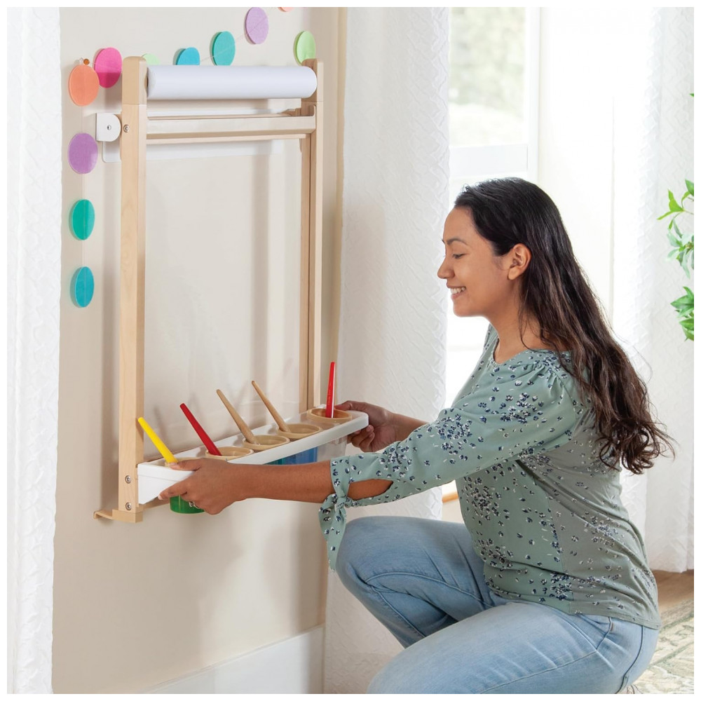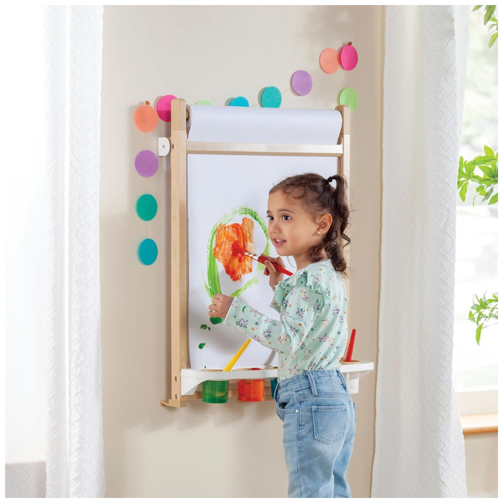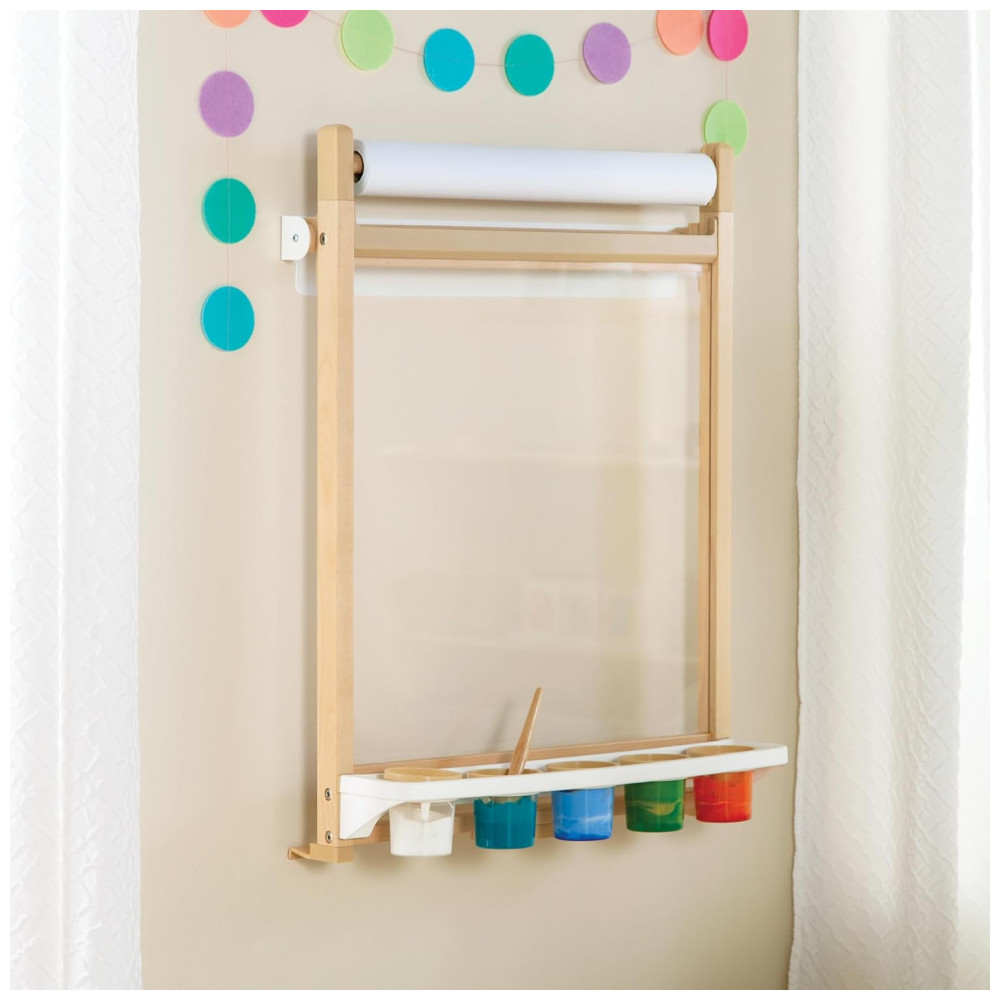Cavalete infantil de parede Guidecraft Natural com bandeja para tinta rolo de papel e painel acrílico magnético