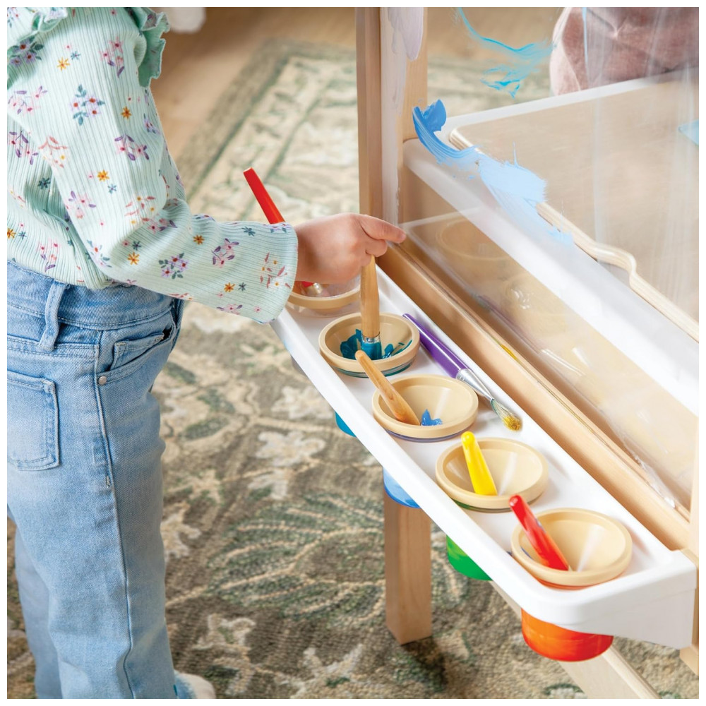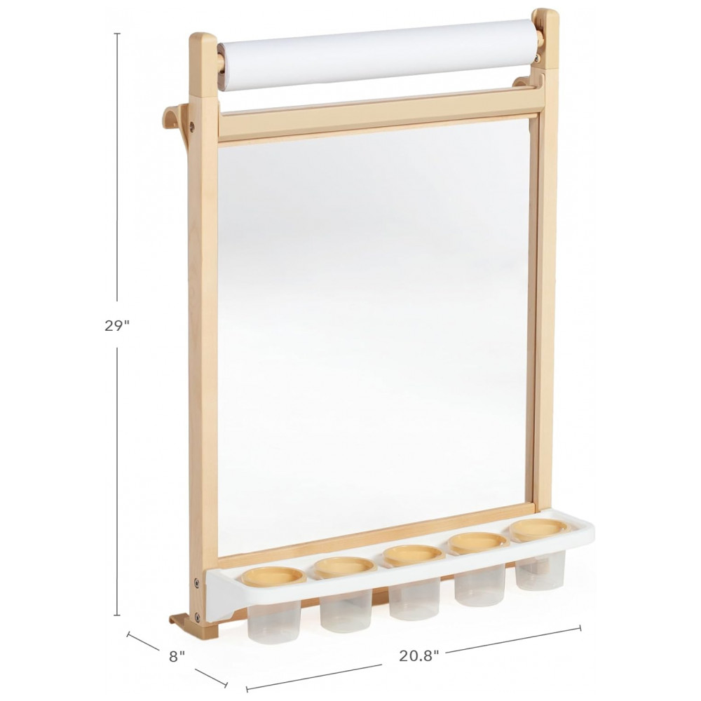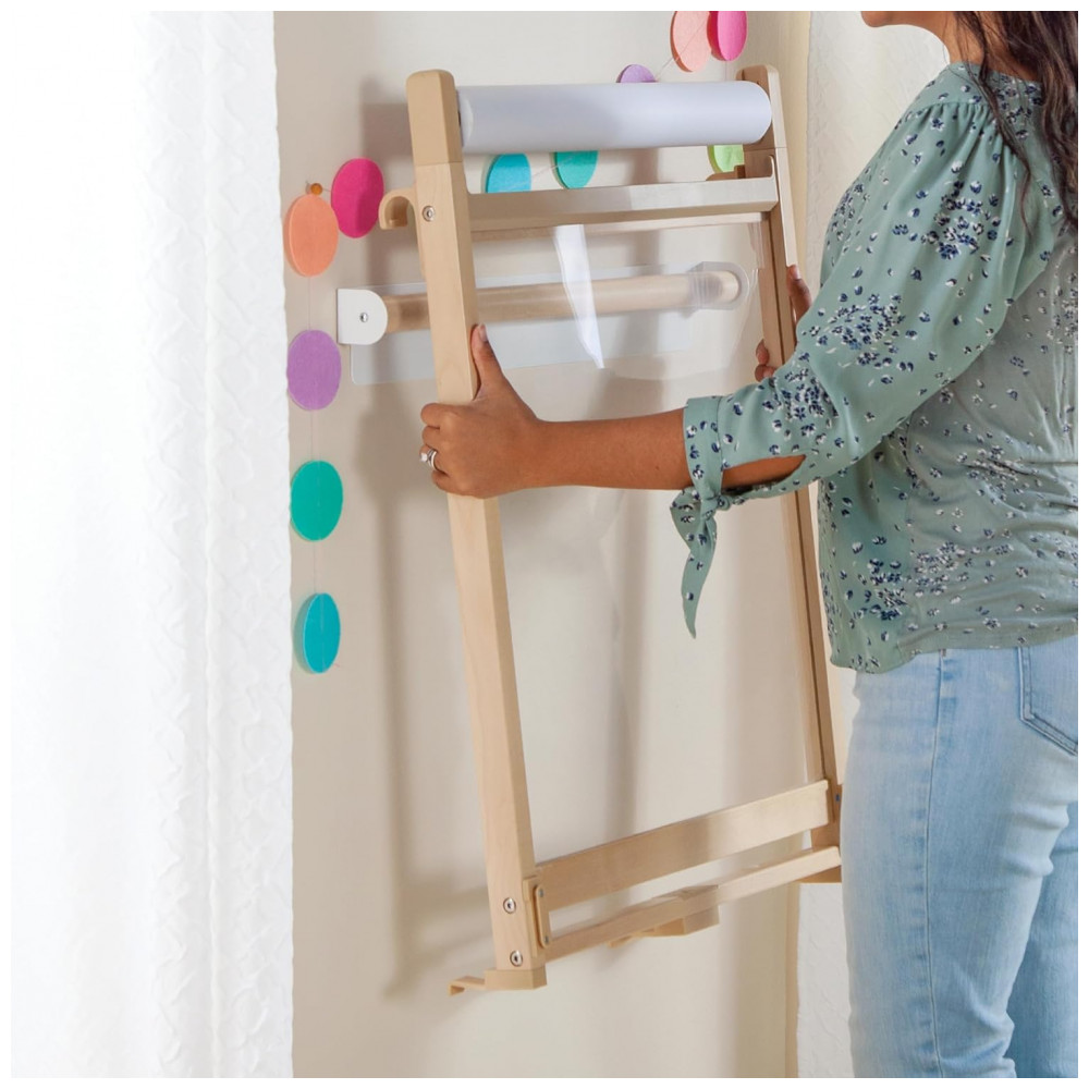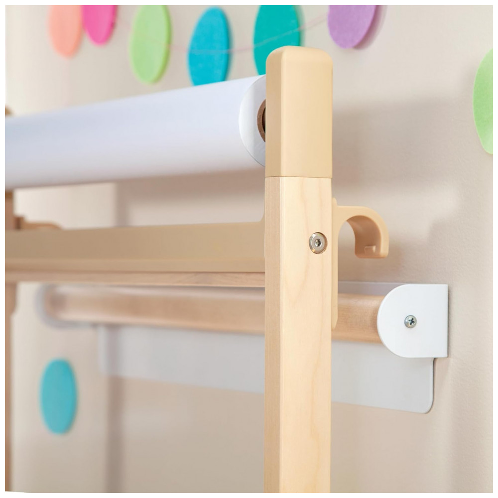Cavalete infantil de parede Guidecraft Natural com bandeja para tinta rolo de papel e painel acrílico magnético