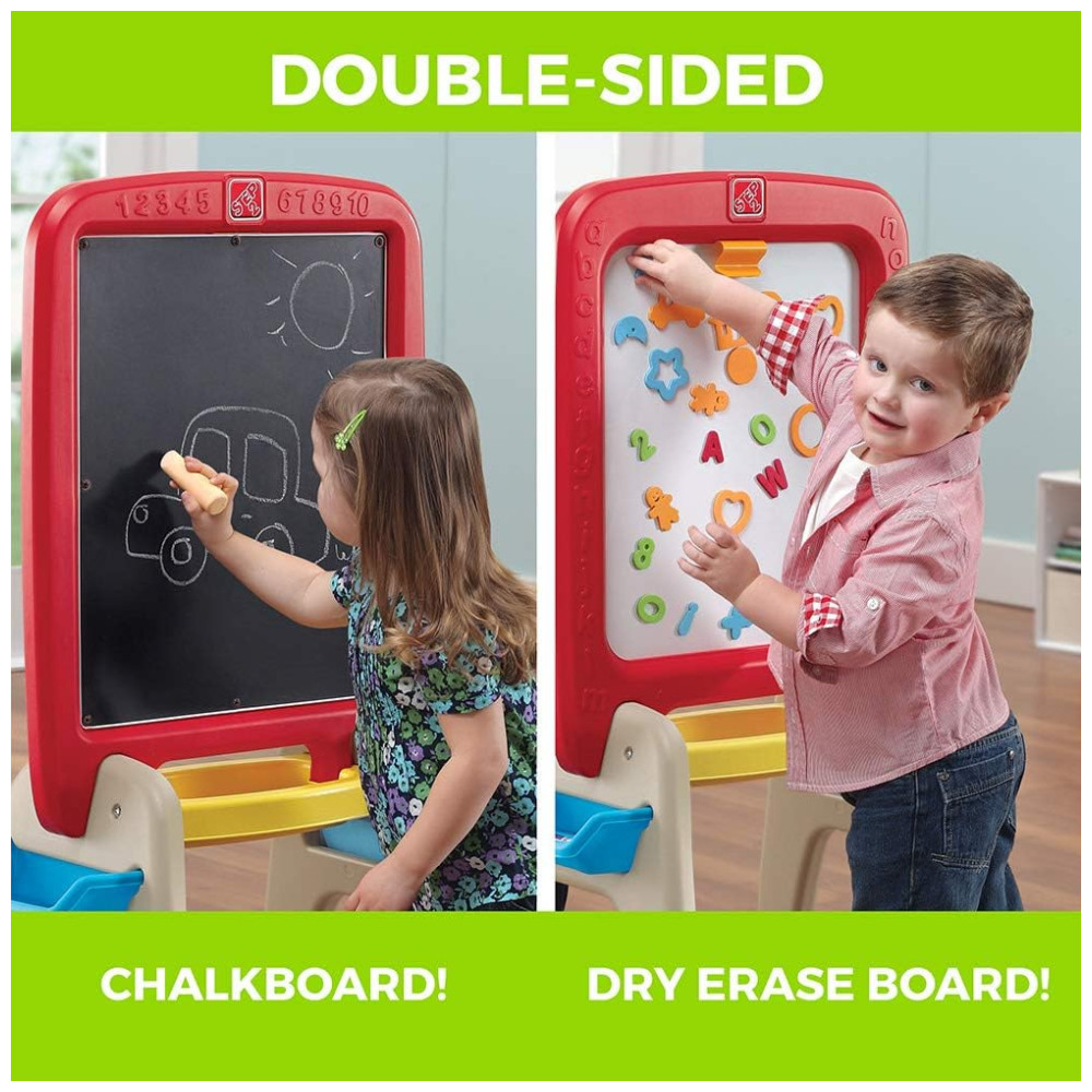 Transforme o aprendizado e as brincadeiras das crianças com o Cavalete Infantil de Dupla Face Step2 – o suporte perfeito para momentos criativos e educativos!