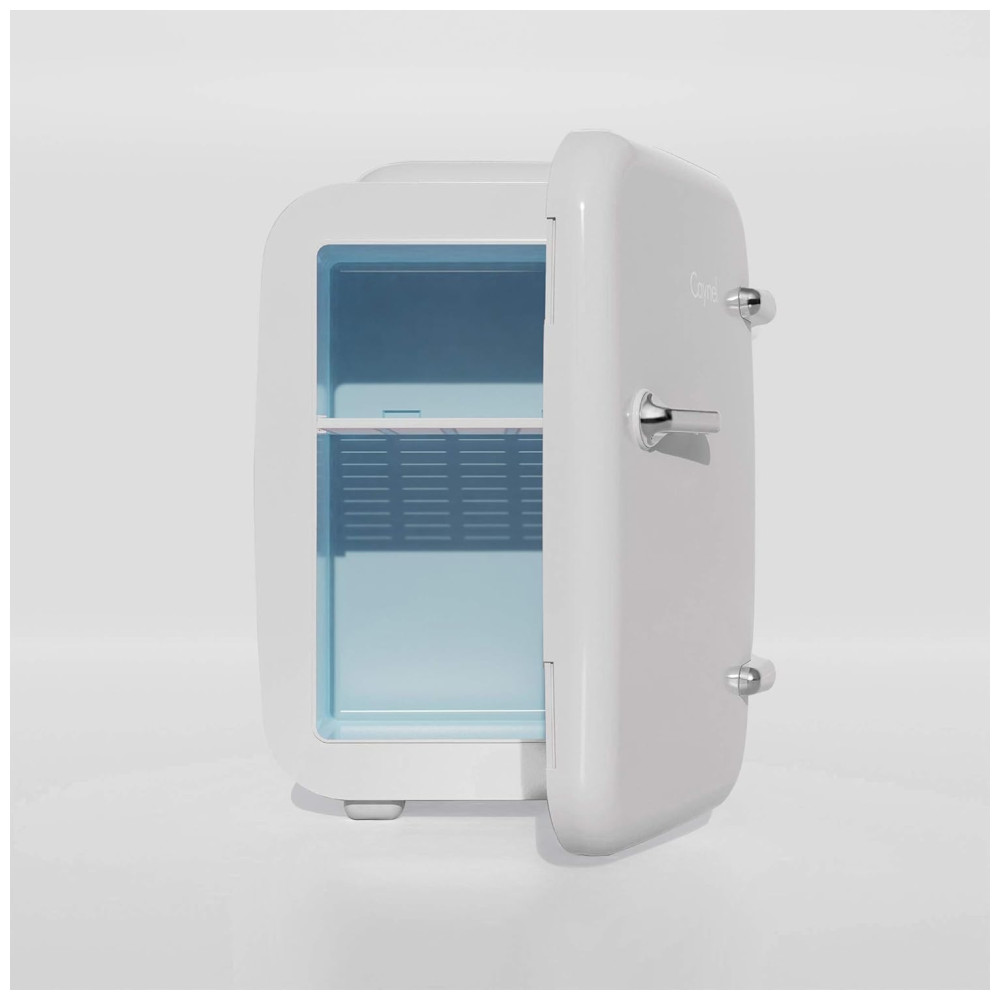 FEATURE Cooling Heating System Cools up to 32F below ambient temperature, and warms up to 150F in an ambient temperature of 75F. Convenient Carry Handle Makes it easy to take the mini fridge with you on the go Stow it in any car, truck, or SUV. Makeup Fridge Included for both standard wall outlets and 12V cigarette lighters in vehicles. The revolutionary way to keep your skincare and cosmetics fresher for longer