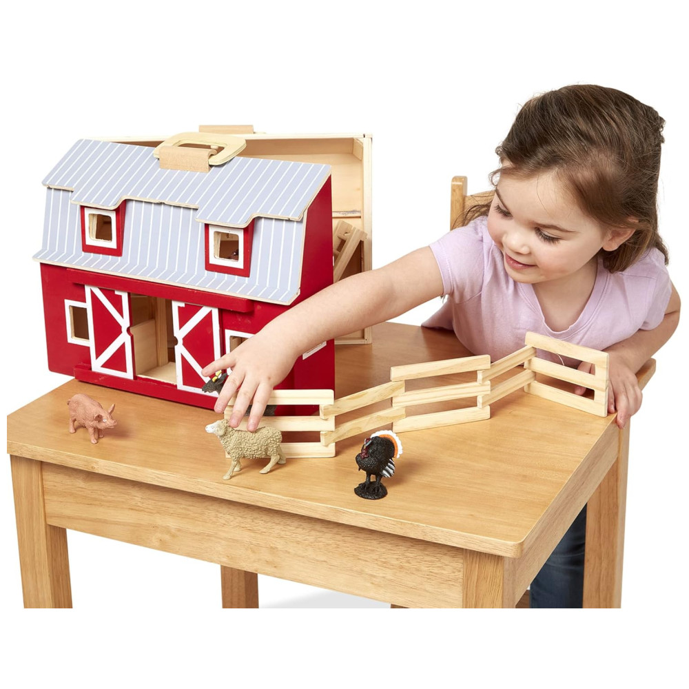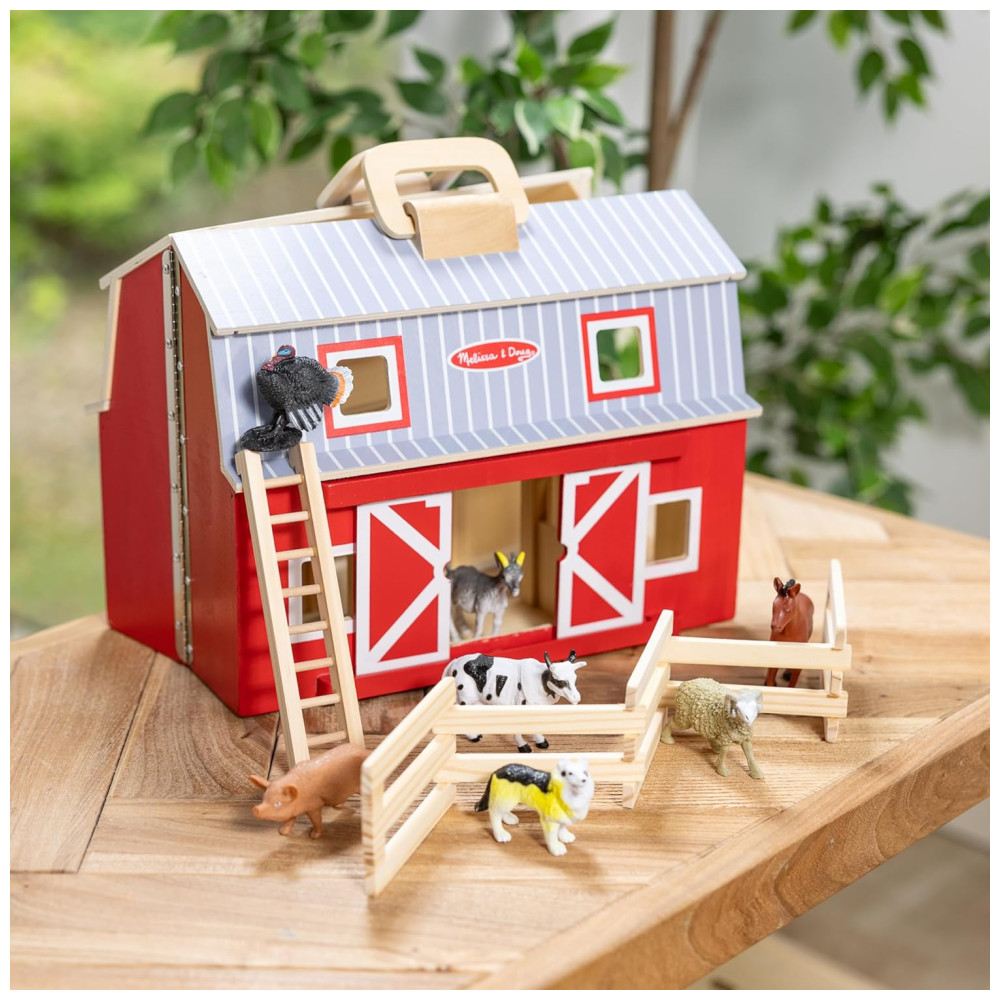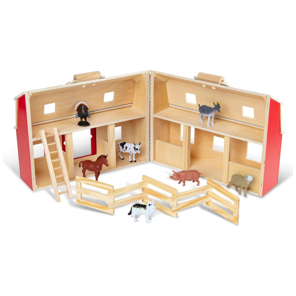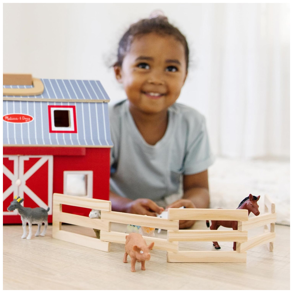 Celeiro de Madeira Dobrável Infantil com 7 Animais de Fazenda e Escada de Madeira para Crianças Acima de 3 Anos Melissa Doug