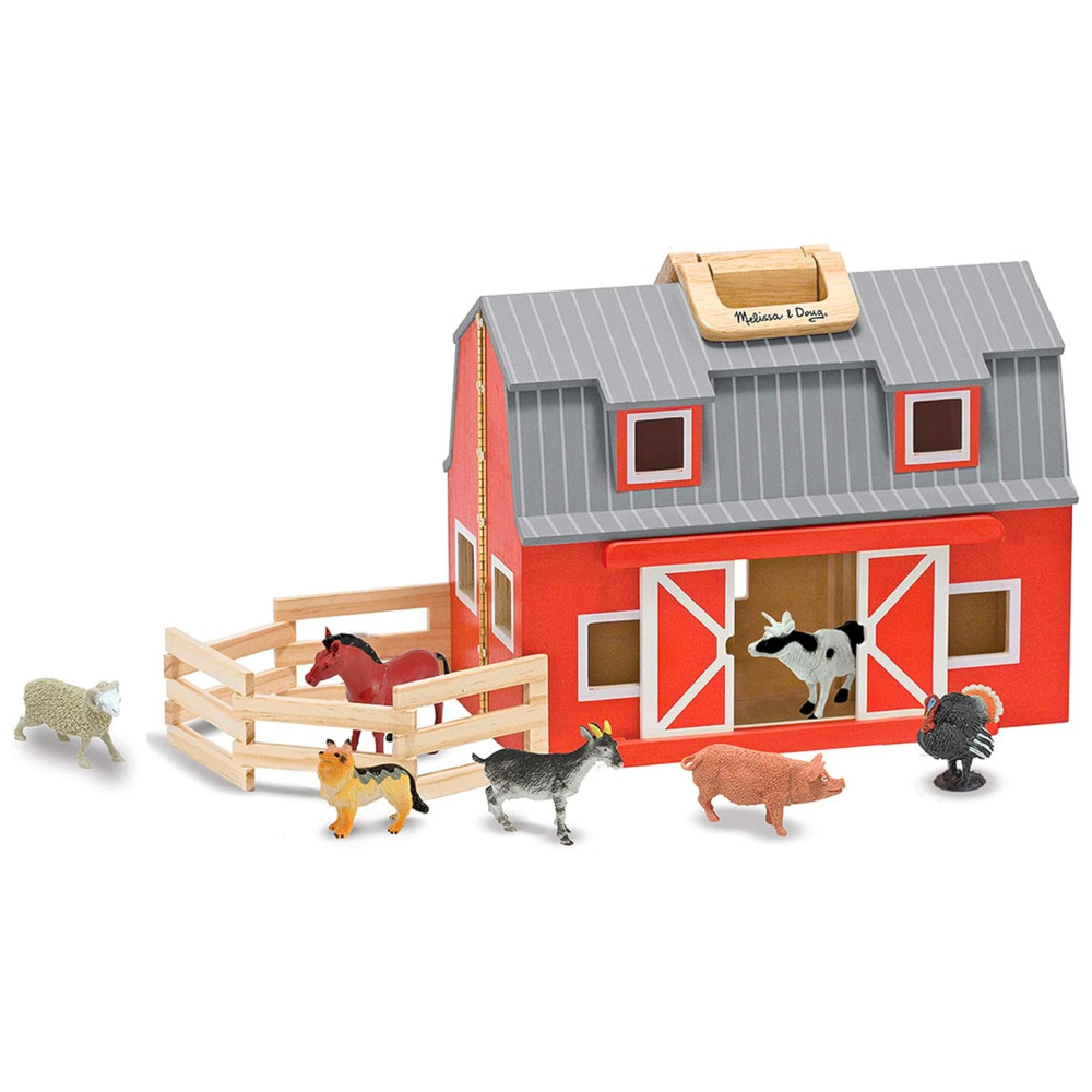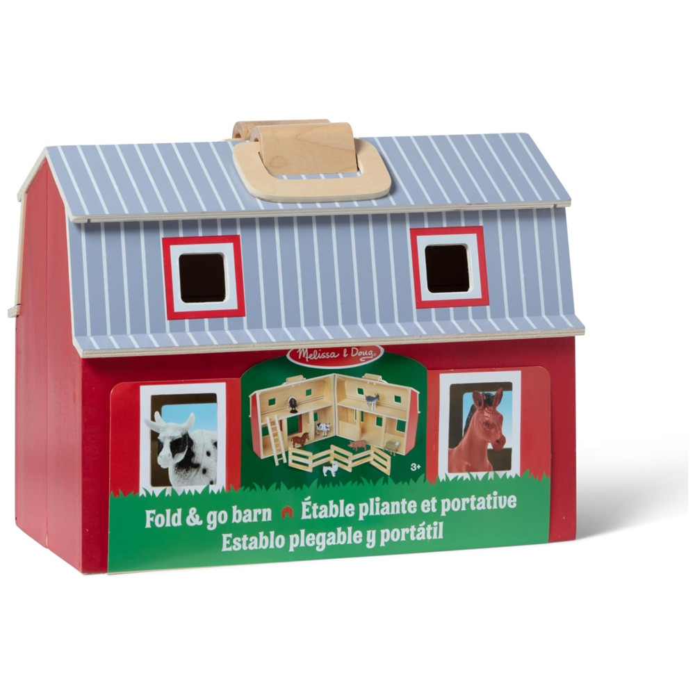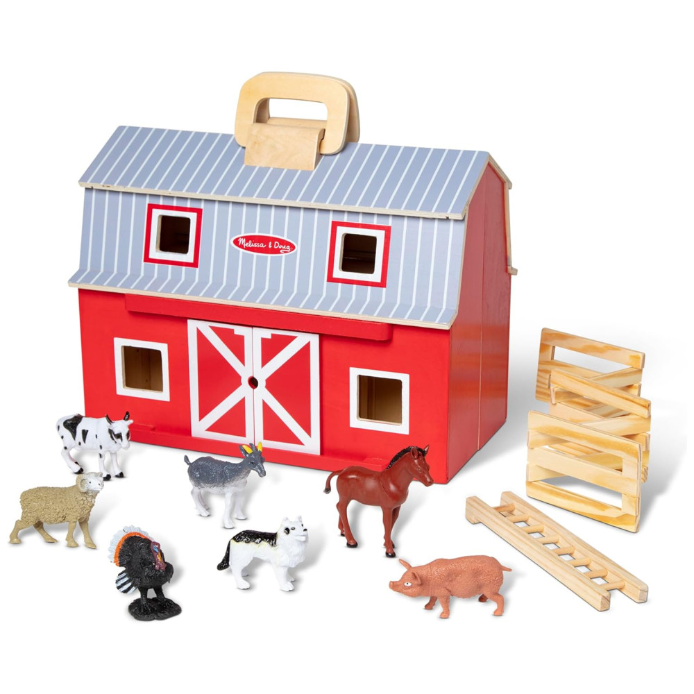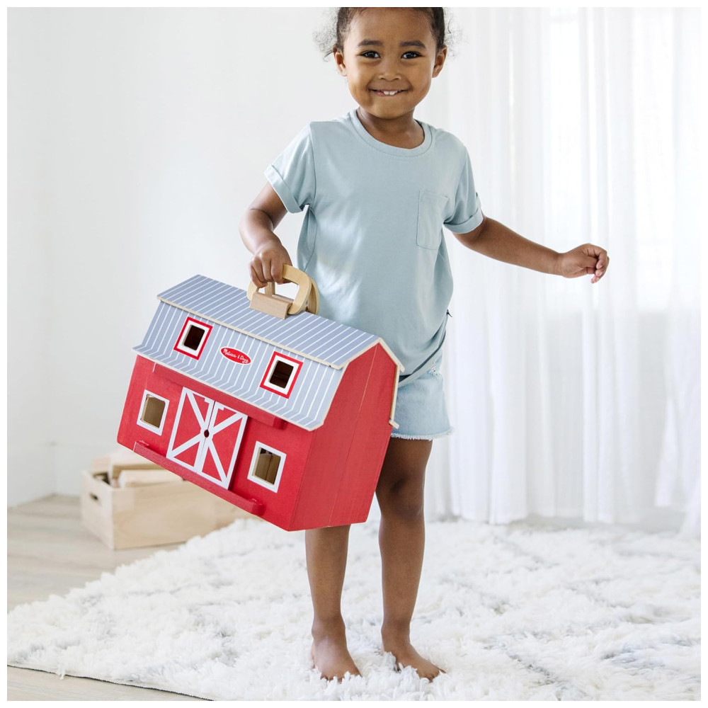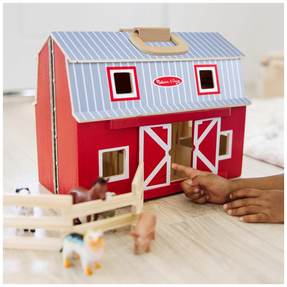 Celeiro de Madeira Dobrável Infantil com 7 Animais de Fazenda e Escada de Madeira para Crianças Acima de 3 Anos Melissa Doug