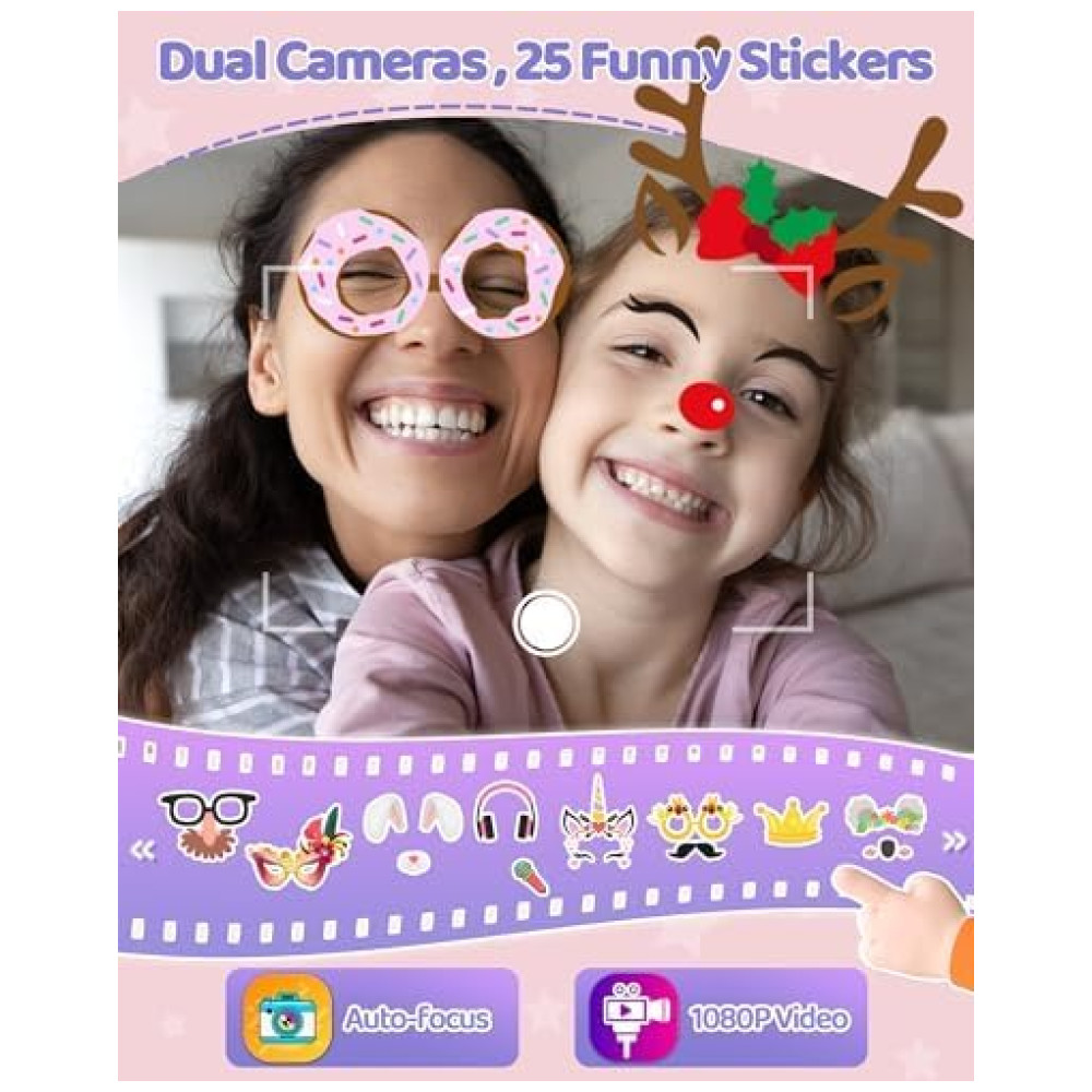 É um presente ideal para aniversários, volta às aulas e Natal para crianças de 3 a 9 anos, permitindo registrar, capturar momentos e compartilhar fotos com família e amigos, sem exposição a perigos online e mantendo as crianças longe dos celulares dos pais.
