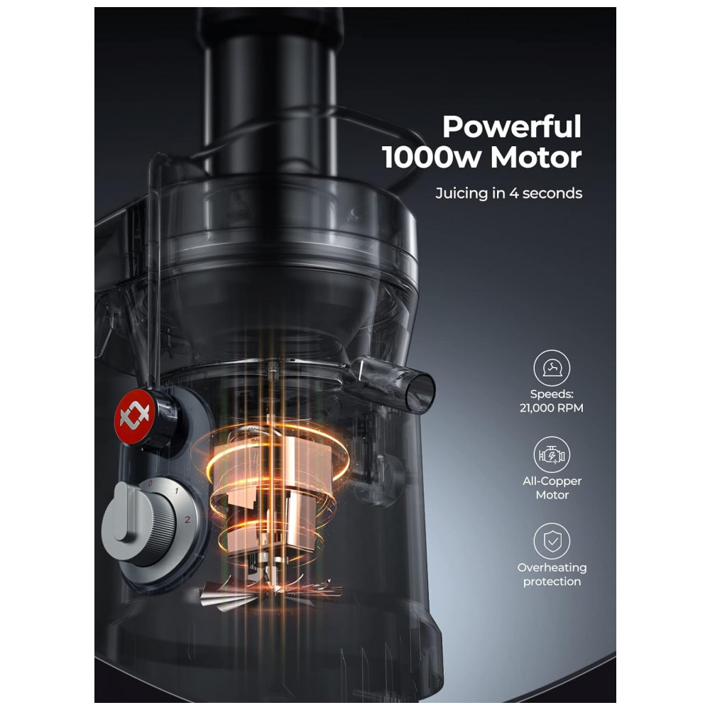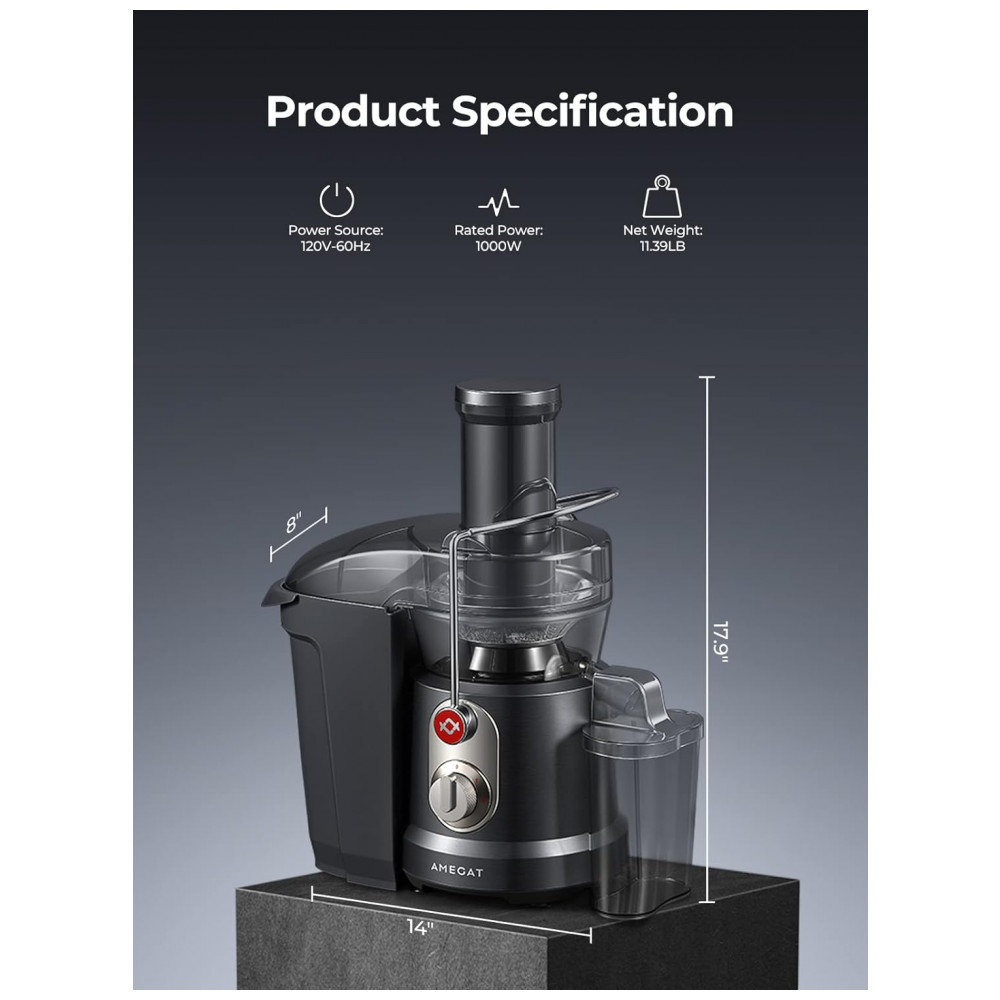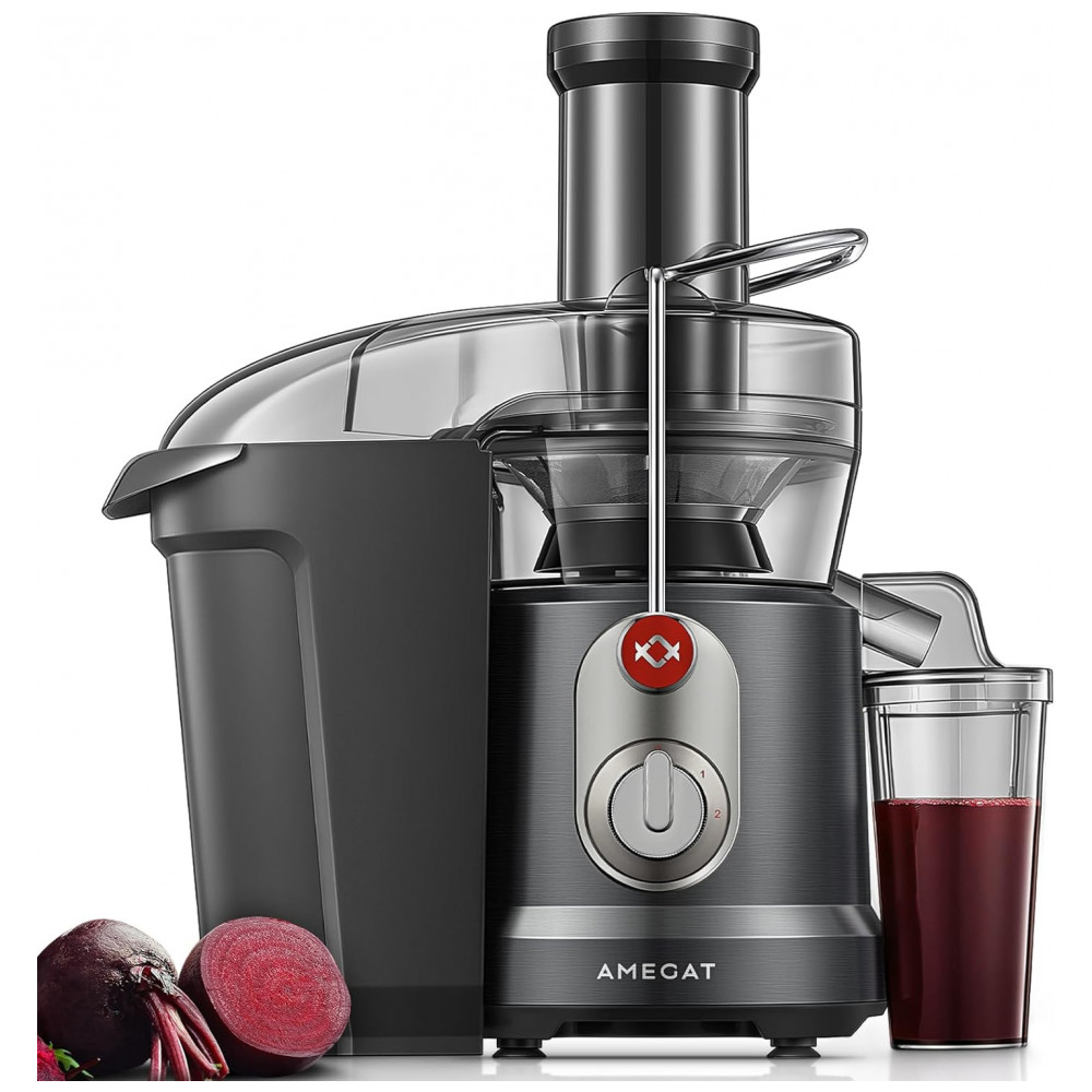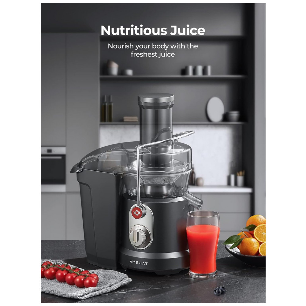 Centrífuga de Frutas 1L com Bocal Largo 8 centímetros 2 Velocidades e Fácil de Limpar 1300W 110v AMEGAT Cinza Fosco