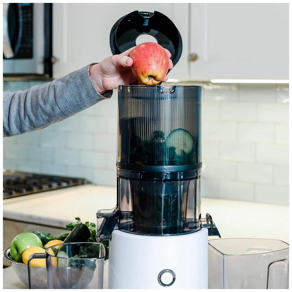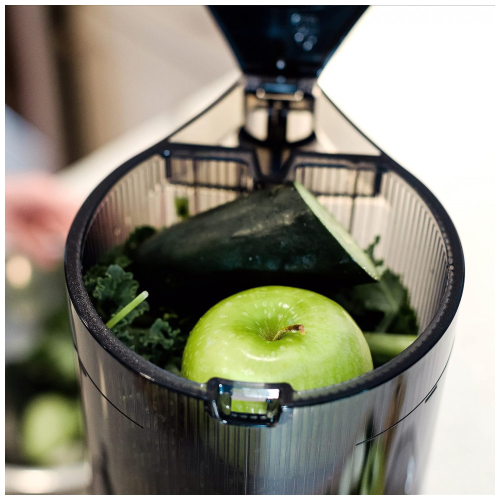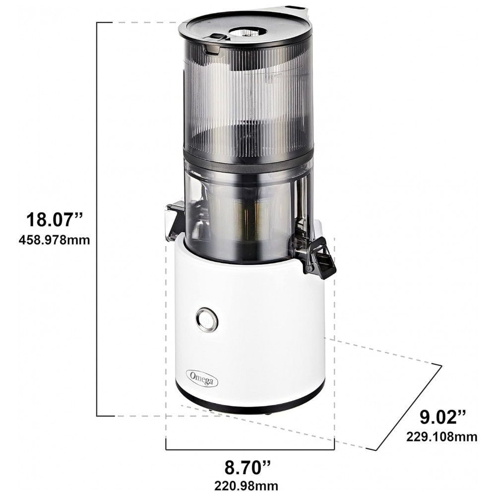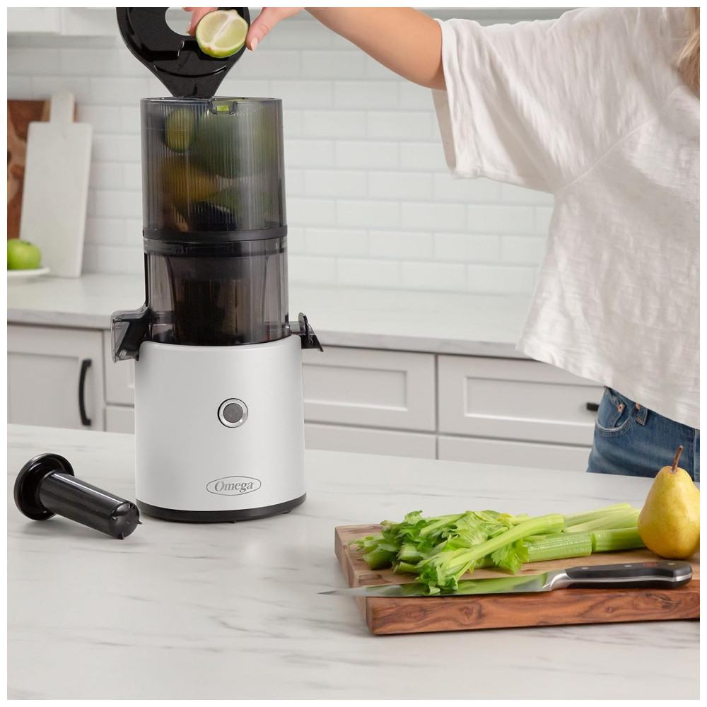 Alcance seus objetivos nutricionais e de estilo de vida com este espremedor fácil de usar e fácil de limpar. O Omega Effortless Batch Juicer pode ajudá lo a obter o valor do seu dia de frutas e vegetais, criando deliciosos sucos frios. Nosso espremedor de fácil preparo possui um funil de mega lote com capacidade de dois litros 2 L, que permite inserir pedaços inteiros de produtos de uma só vez, eliminando o trabalho de preparação. A montagem e a limpeza são fáceis com o sem fim tudo em um e sem peneira de suco Além de sucos de frutas e vegetais, você também pode preparar leites de nozes, sorvetes e muito mais. O espremedor possui 150 watts para sucos em lotes silenciosos, de baixa velocidade e prensados a frio para extrair a quantidade máxima de vitaminas, nutrientes e suco.