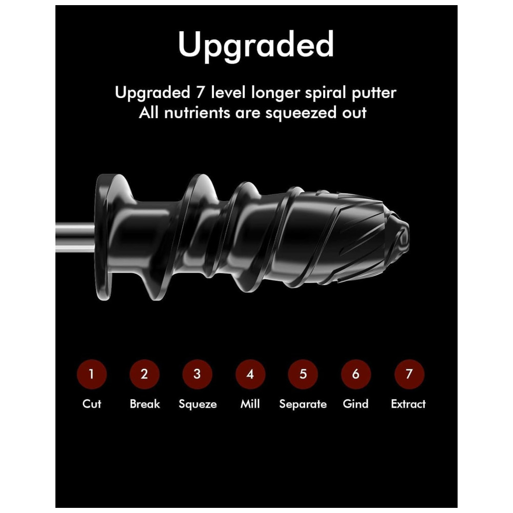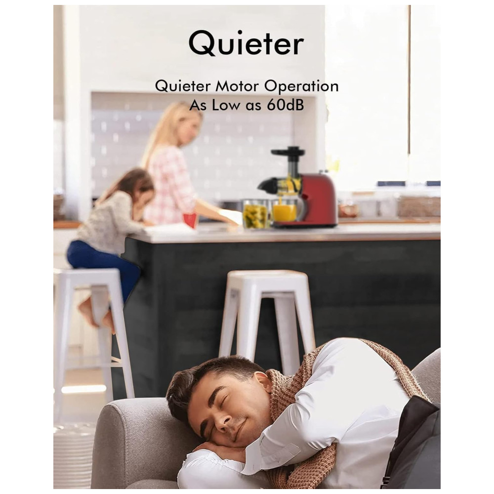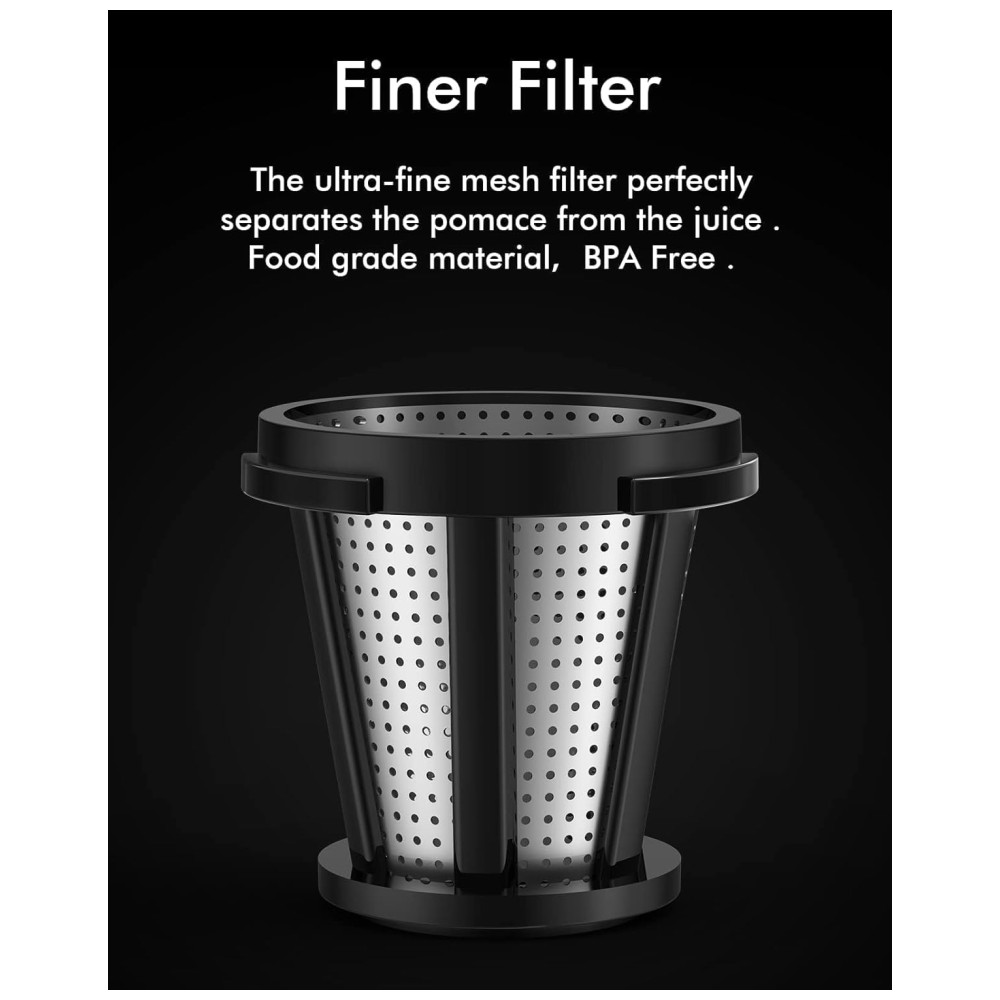 Maior e mais pura produção de suco e nutrição mais rica O espremedor de sucos MAMACHOICE adota motor de baixa velocidade e moagem fina, que pode reter melhor o valor nutricional de frutas e vegetais. Separa perfeitamente o suco da polpa e extrai mais suco, vitaminas e minerais, reduzindo o índice de oxidação. Use o para fazer uma variedade de alimentos saudáveis para sua família e desfrute facilmente de diferentes sabores de suco todos os dias.