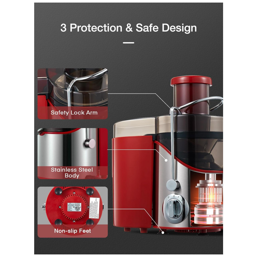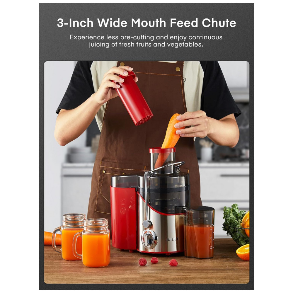 Centrífuga de Frutas 350mL com 3 Velocidades Pés Antiderrapantes e Fácil de Limpar 110V 400W Juilist Vermelho