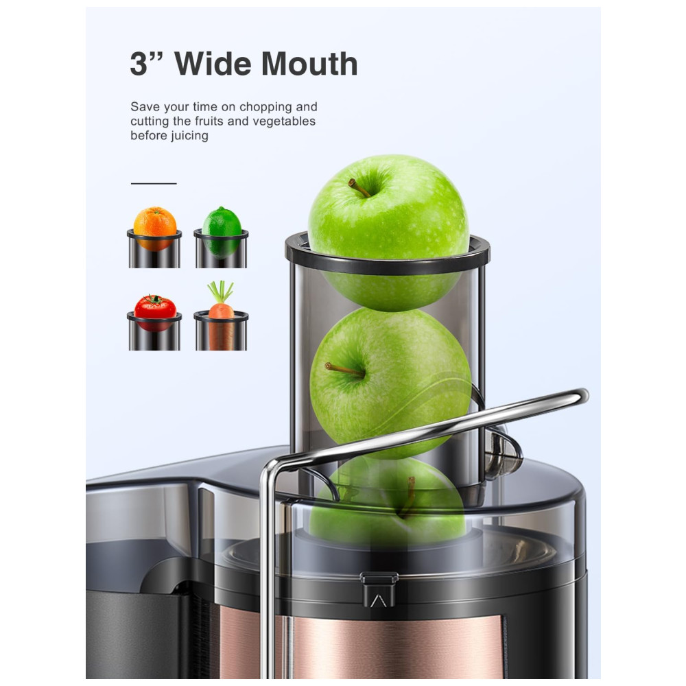Centrífuga de Frutas 500mL com Bocal de Alimentação Largo 2 Velocidades e Proteção Contra o Superaquecimento 500W110v Qcen Ouro Rosa