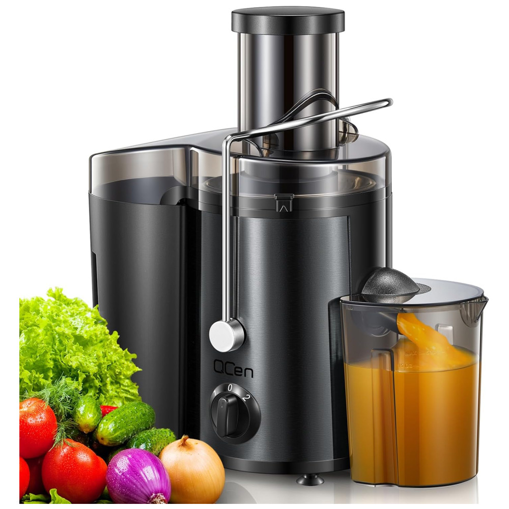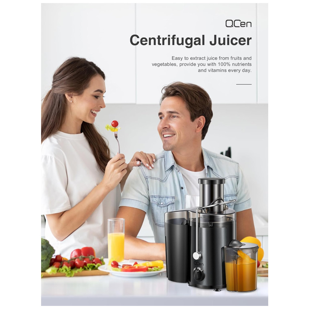 Centrífuga de Frutas 500mL com Bocal de Alimentação Largo 2 Velocidades e Proteção Contra o Superaquecimento 500W110v Qcen Preto Metálico