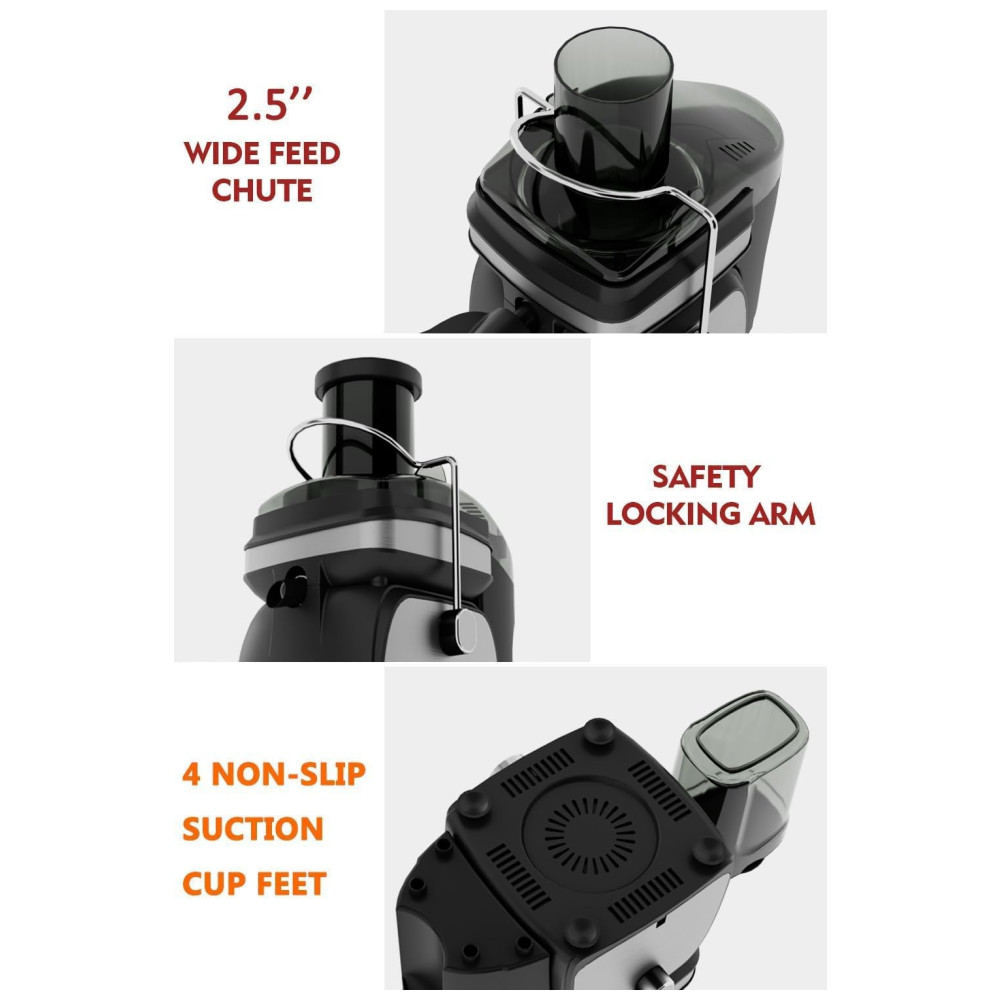 Mega estabilização A parte inferior do espremedor é equipada com pés de borracha antiderrapante e permite que você use o espremedor com segurança e mais estável. O bico prático antigotejamento evita gotejamento após a extração e continua funcionando na parte superior